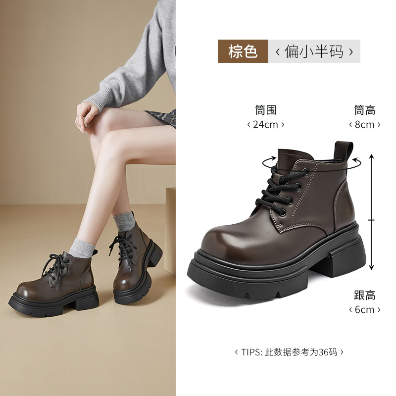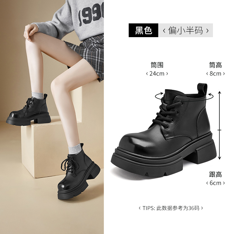 아우 구시덴 블랙 코어스 힐 마틴 부츠 여성 2024 년 새로운 가을 및 겨울 클래식 레트로 영국 스타일 작은 가죽 신발 발목 부츠스토어 가기