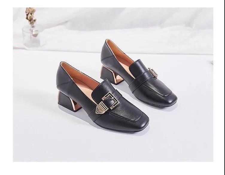 메리 제인 가죽 신발 영국 스타일 스퀘어 힐링 가죽 신발 여성의 2024 새로운 스타일 슬립 온 패션 편안한 로퍼 패션스토어 가기