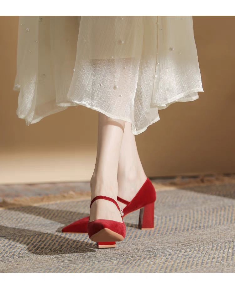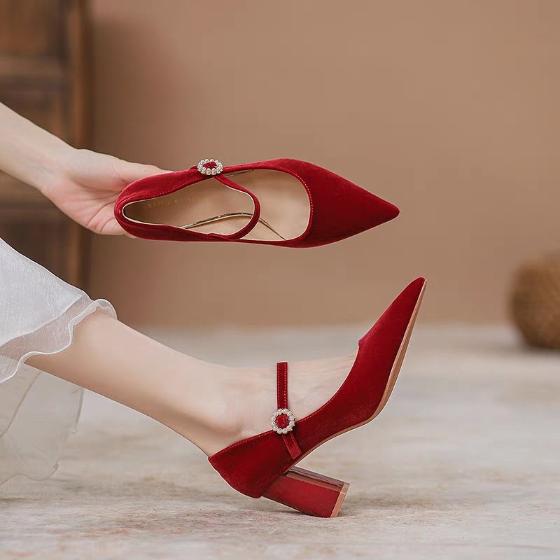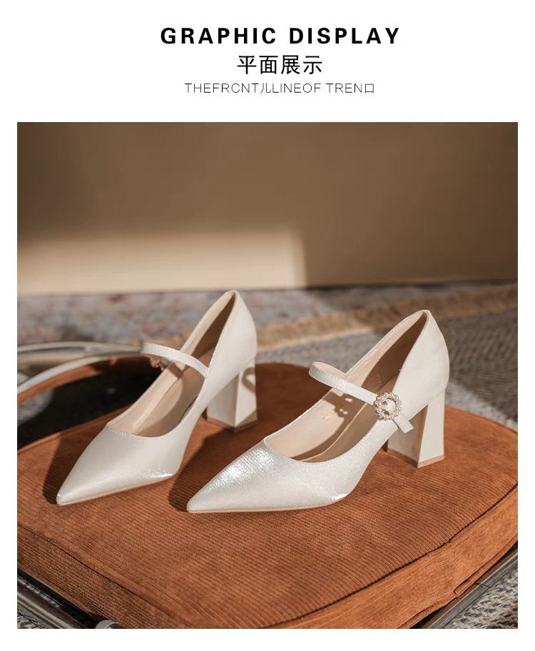 뾰족한 청키 힐 신발 여성의 섹시한 봄과 가을 싱글 레이어 신발 여성의 2024 새로운 도착 패션 올 매치 웨딩 신발 신부 신발 연회스토어 가기