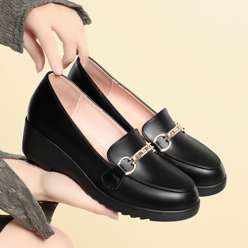 봄과 가을 로퍼 새로운 평면 가죽 신발 부드러운 가죽 여성 신발 부드러운 편안한 웨지 힐 여성 신발스토어 가기