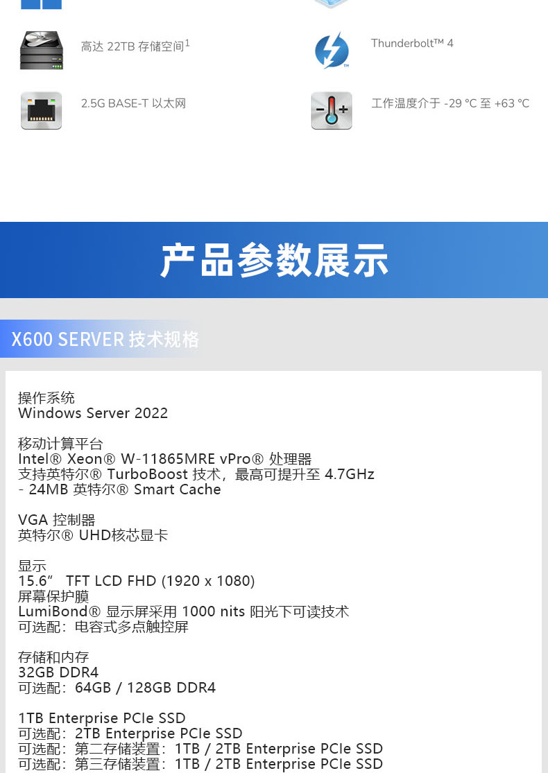 Getac 15.6inch X600Server 견고한 노트북 독립형 디스플레이