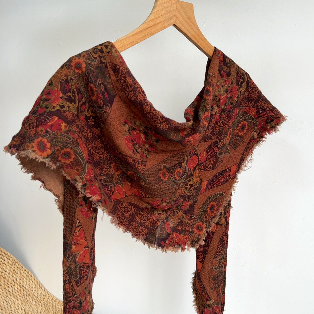 • 사각 스카프 브라운 레드 68*68cm 사각 스카프