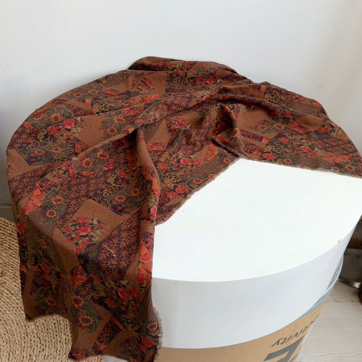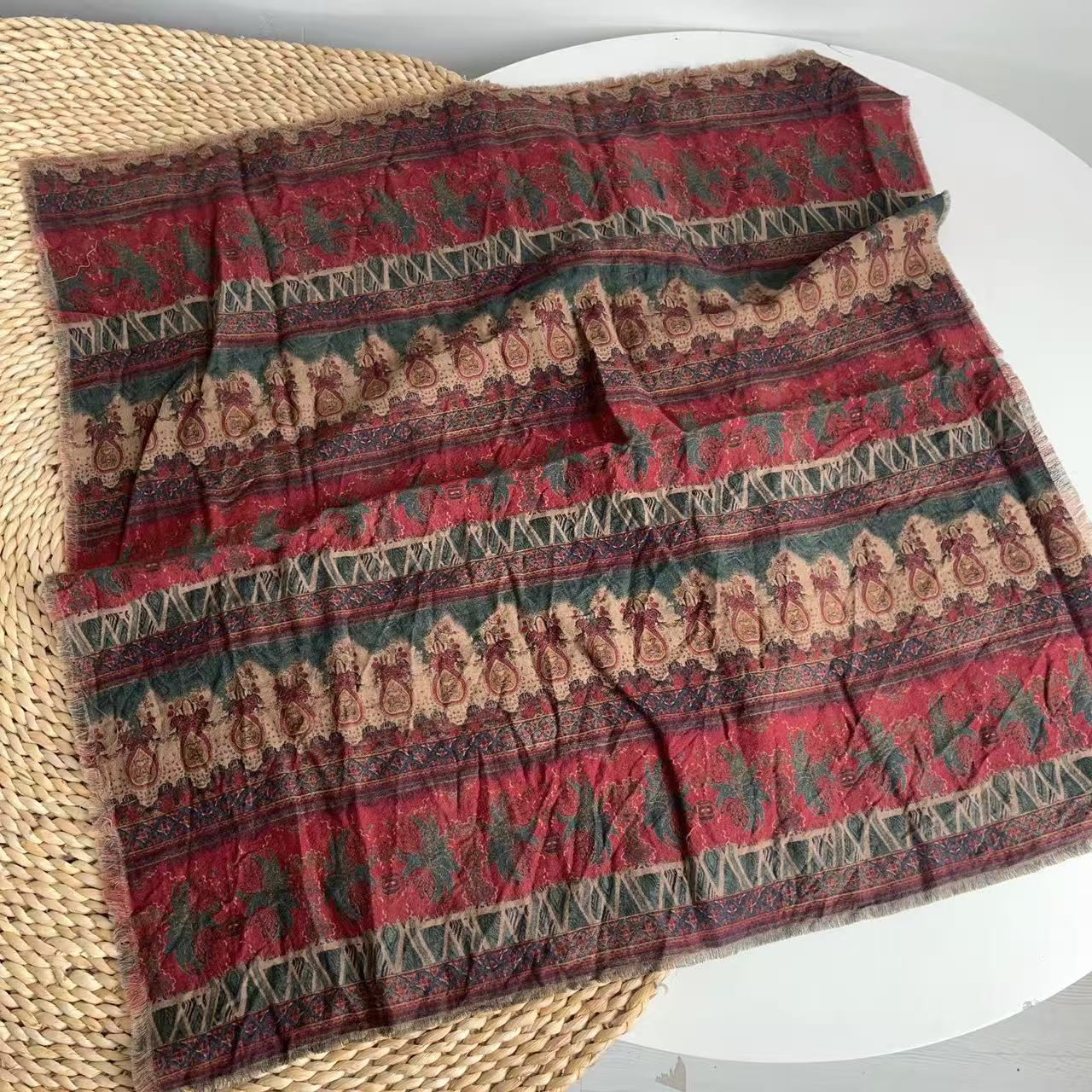• 스퀘어 스카프 140*140cm 브라운 레드 프린트