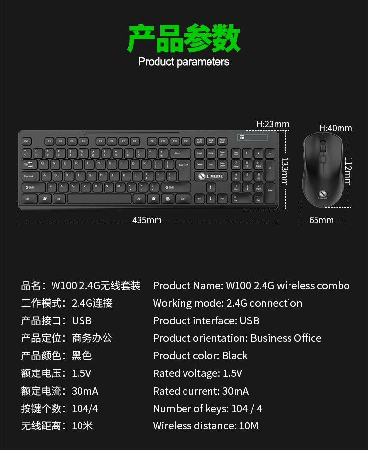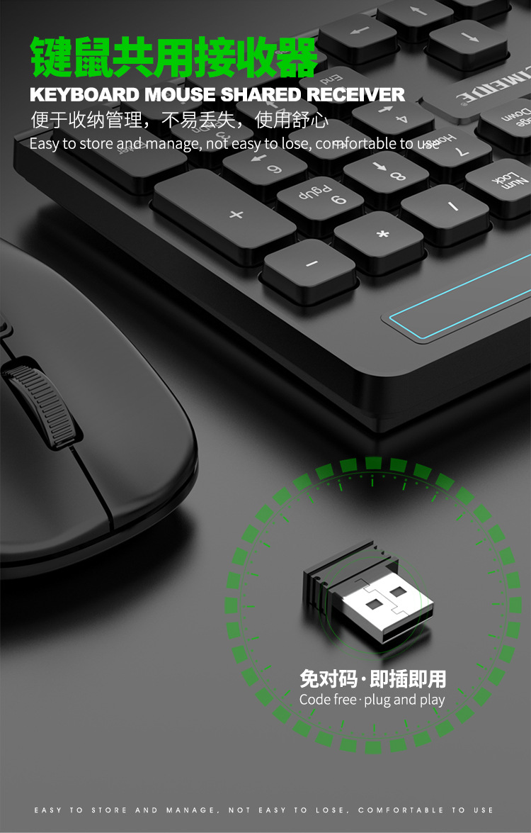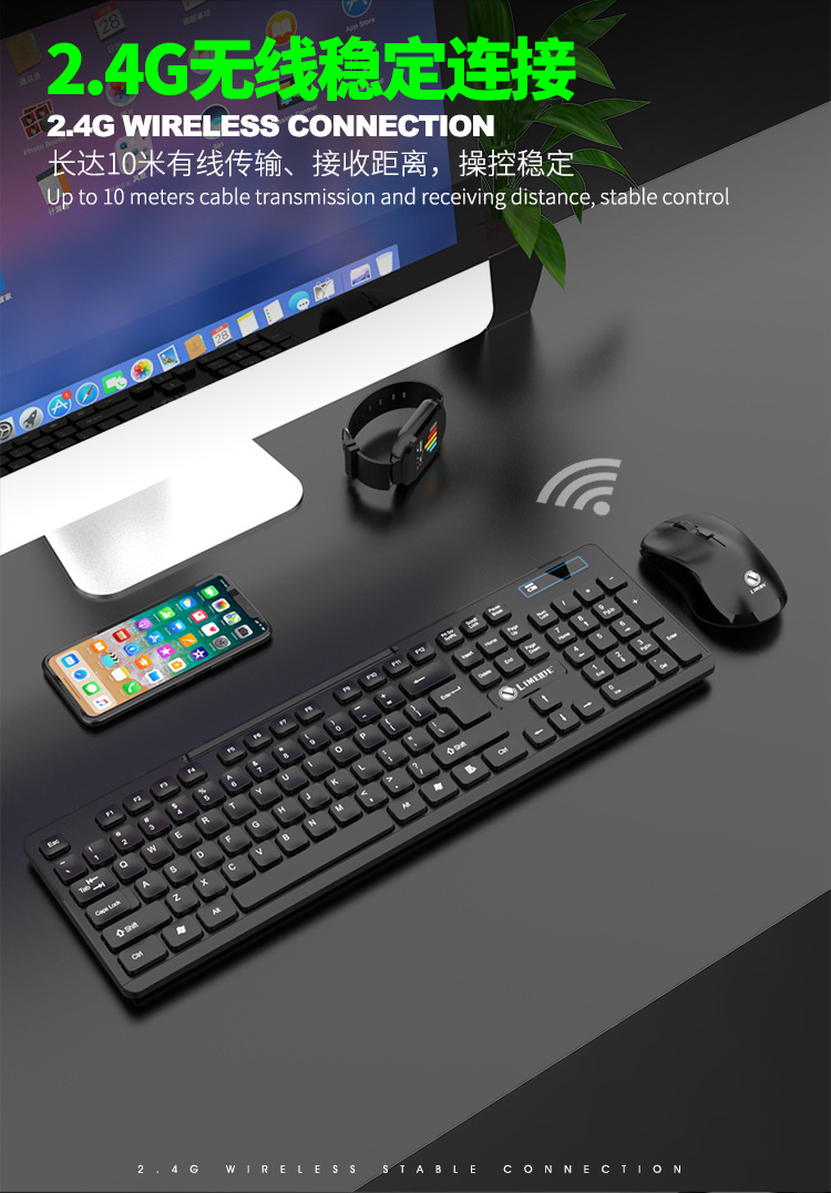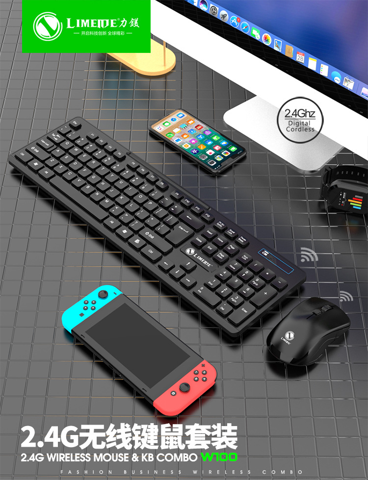 리튬 마그네슘 W100 초콜릿 비즈니스 사무실 무선 키보드 및 마우스 세트 올인원 데스크톱 컴퓨터 키보드 및 마우스