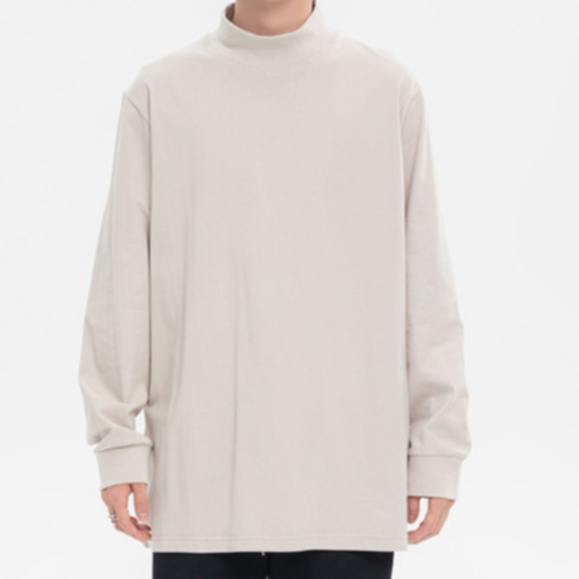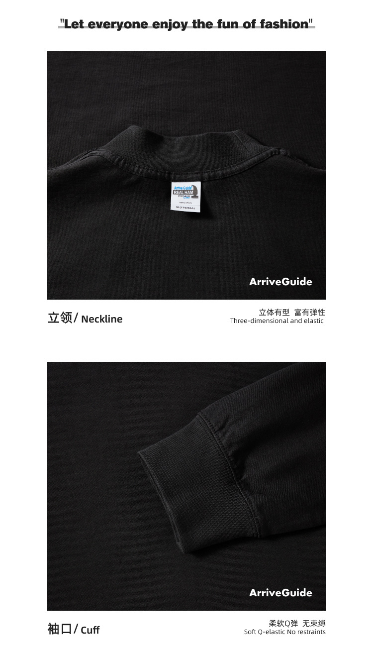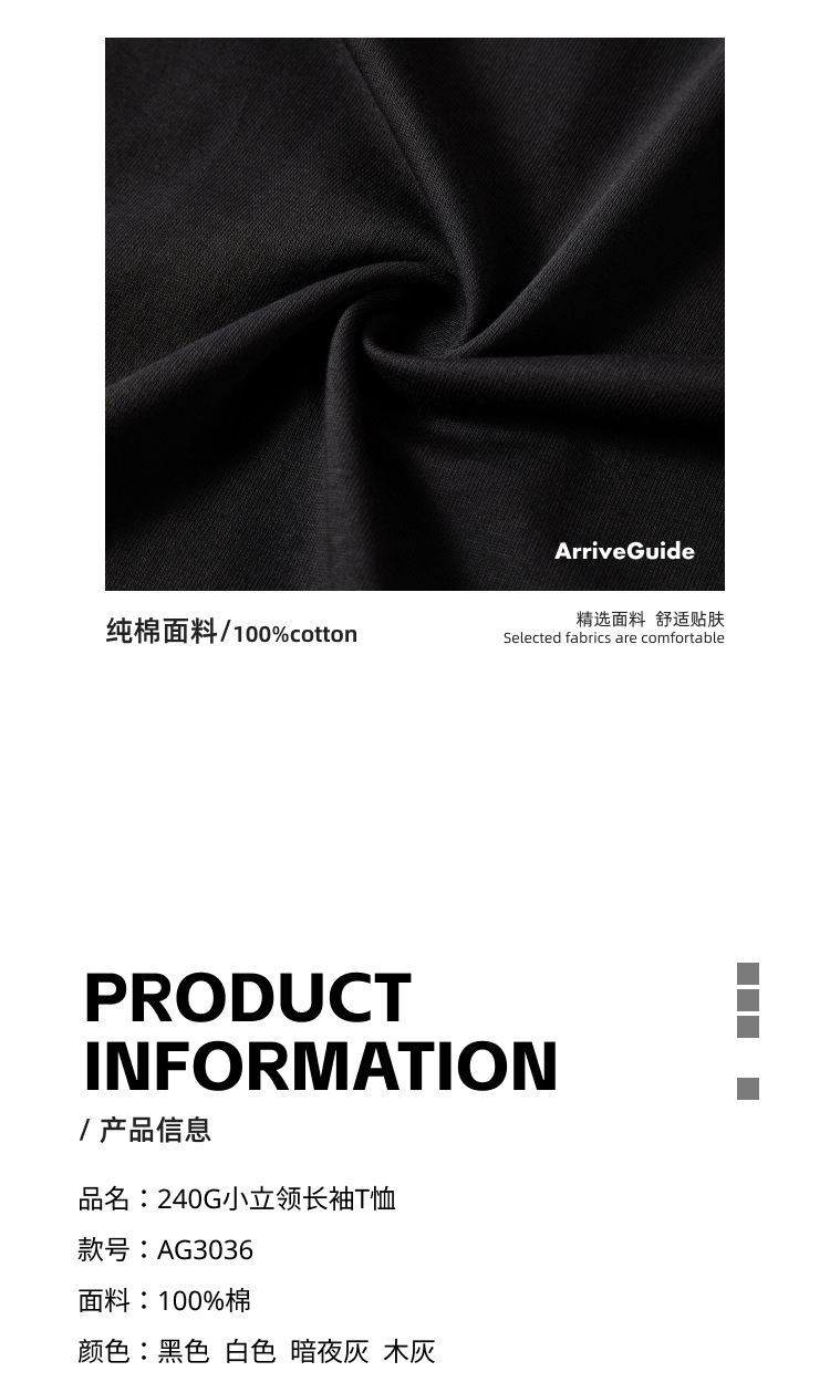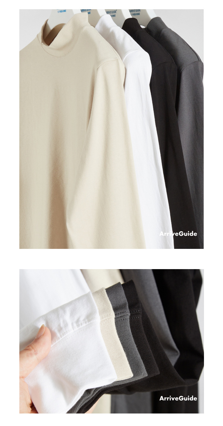 AG240 g 작은 칼라 느슨한 긴 소매 면 티셔츠 남성 봄과 가을 단색 캐주얼 조커 코트 트렌디 한 탑스토어 가기