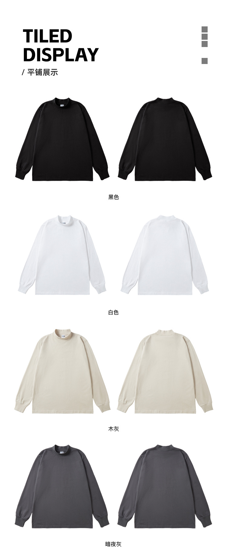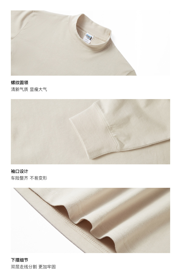AG240 g 작은 칼라 느슨한 긴 소매 면 티셔츠 남성 봄과 가을 단색 캐주얼 조커 코트 트렌디 한 탑