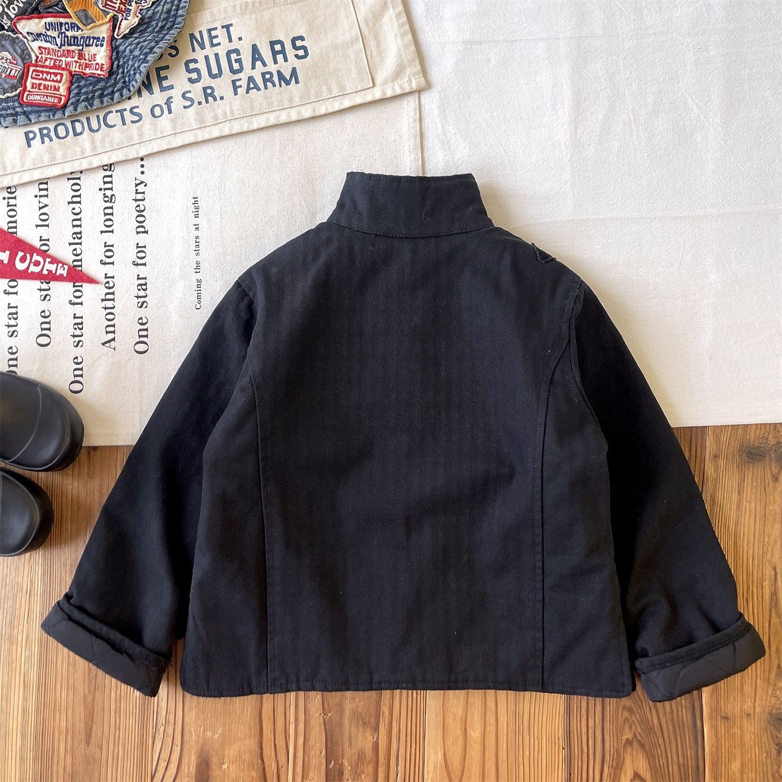 [재고] 일본 아동복 가을과 겨울 중 DD 어린이 중국 검은 색 슈퍼 자수 면 패딩 재킷 재킷