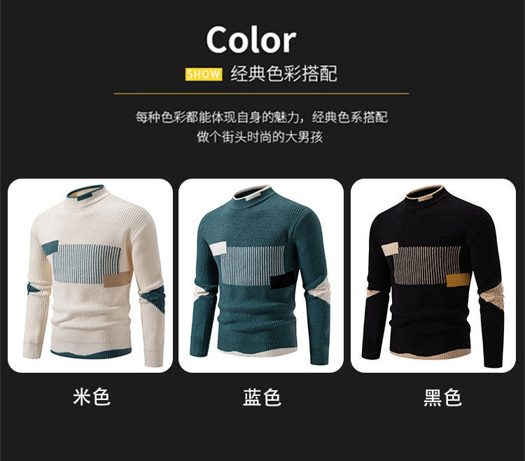 2024 대외 무역 가을과 겨울 새로운 남성 패션 트렌드 컬러 매칭 울 스웨터