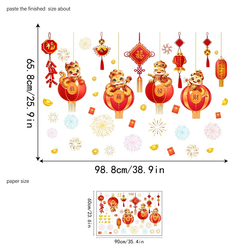 Yiyao JD6909 뱀의 해 창조적 인 붉은 랜턴 폭죽 조합 유리 스티커 쇼핑몰 유리문과 창문 정전기 스티커