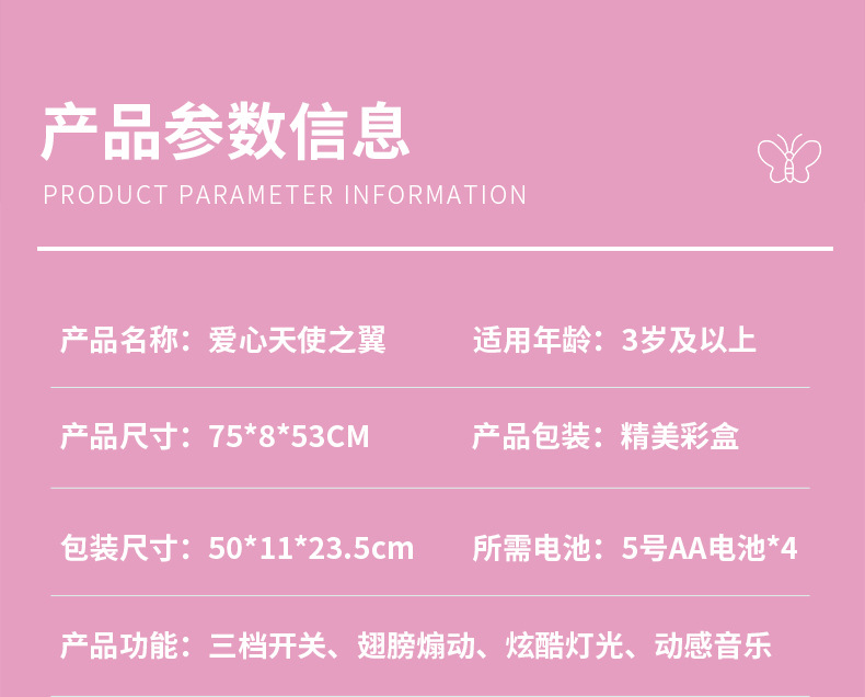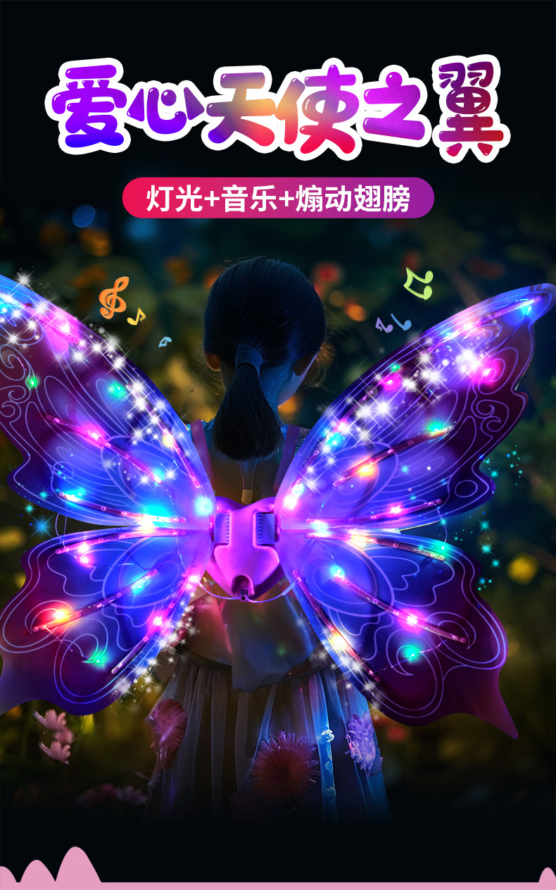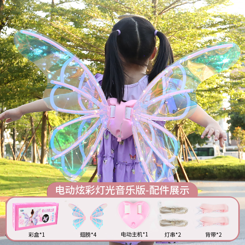 어린이 전기 나비 날개 빛과 콘서트 장난감 큰 백웨어 작은 소녀의 생일 선물 스톨스토어 가기