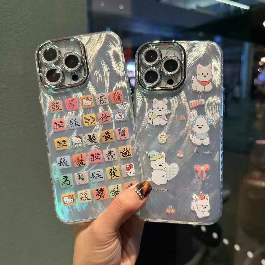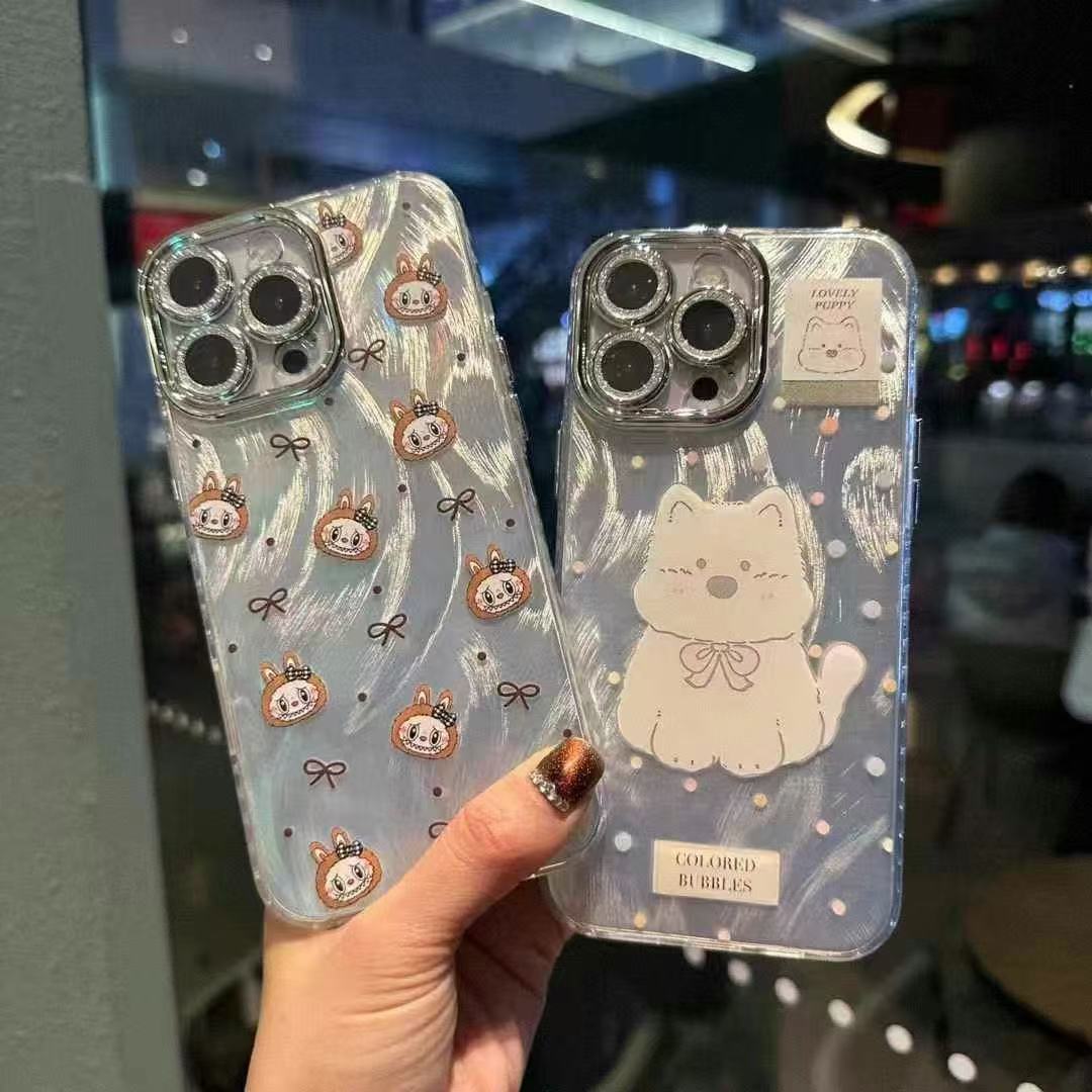깃털사 글리터 렌즈 필름은 Apple 17 휴대폰 케이스 iPhone16/15 미세 구멍 전기 도금 만화 보호 커버에 적합합니다.