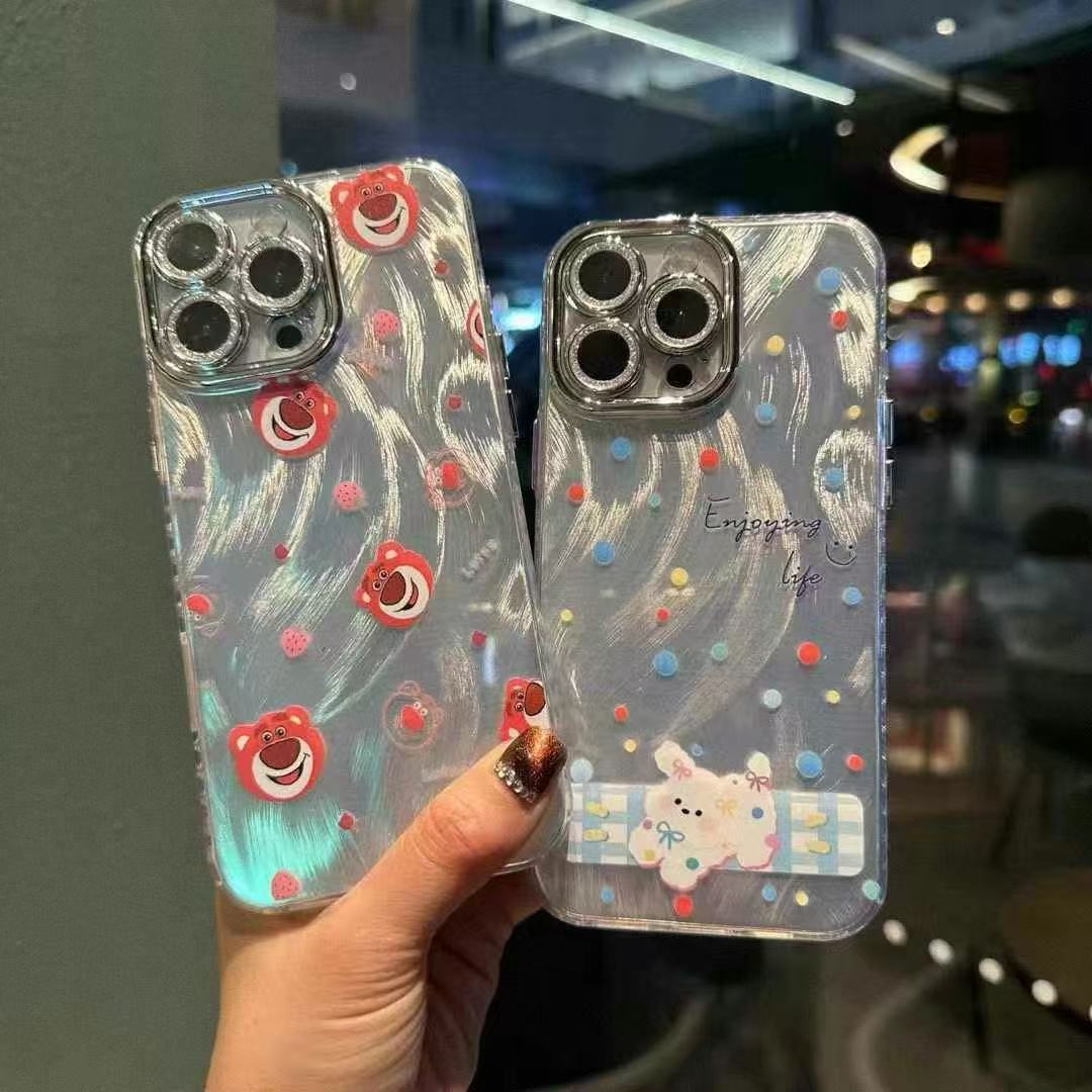 깃털사 글리터 렌즈 필름은 Apple 17 휴대폰 케이스 iPhone16/15 미세 구멍 전기 도금 만화 보호 커버에 적합합니다.스토어 가기