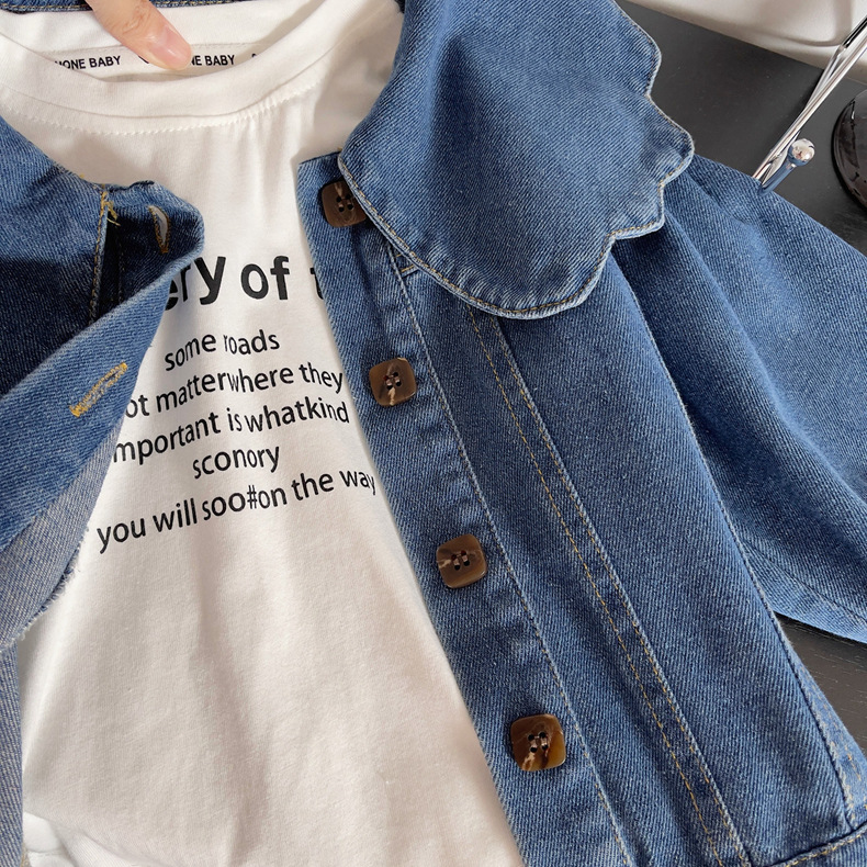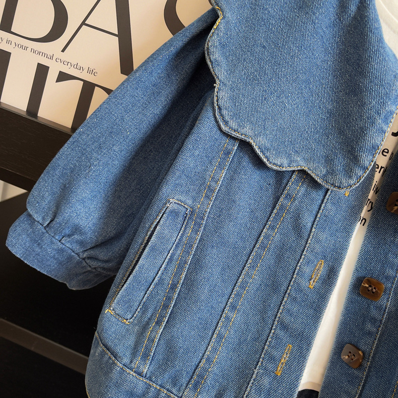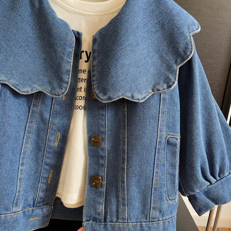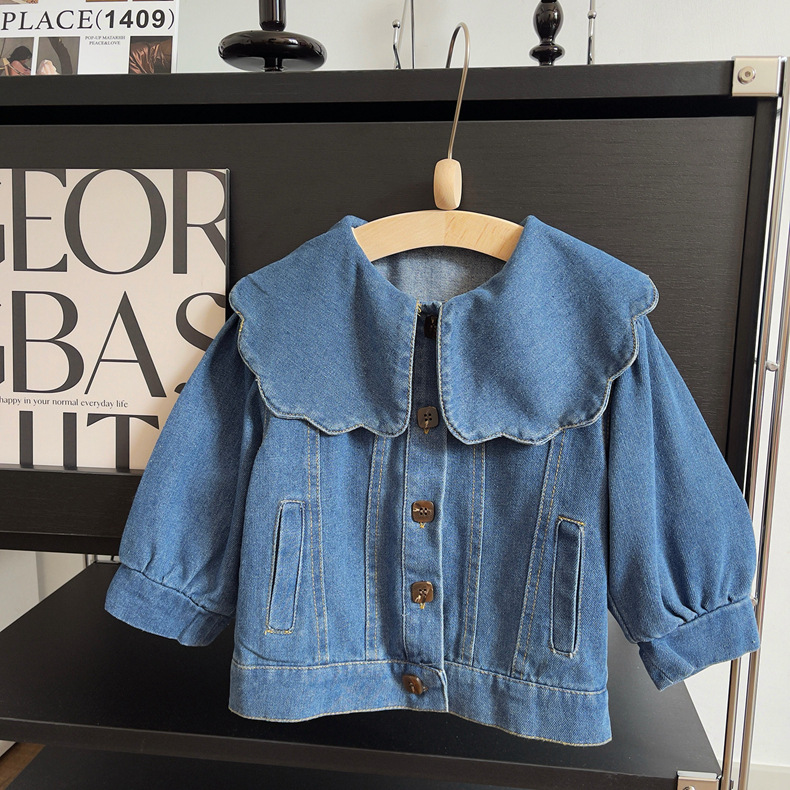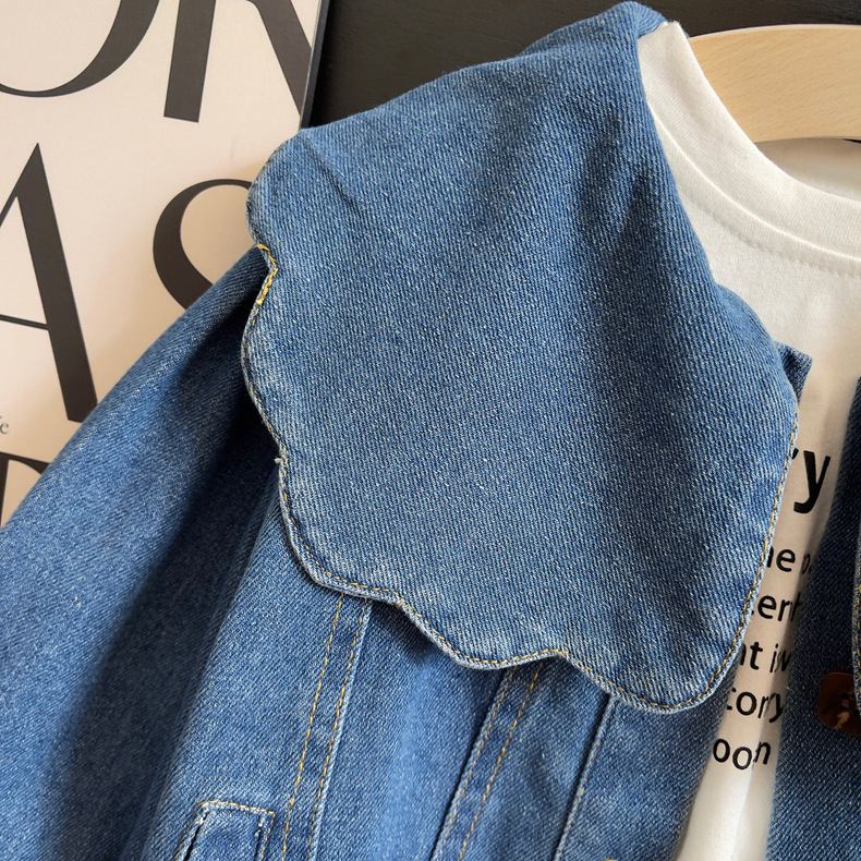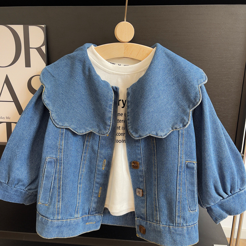 2025 신상 여아 코트, 봄, 가을 데님 코트, 한국식 루즈하고 패셔너블한 대형 라펠 데님 코트스토어 가기
