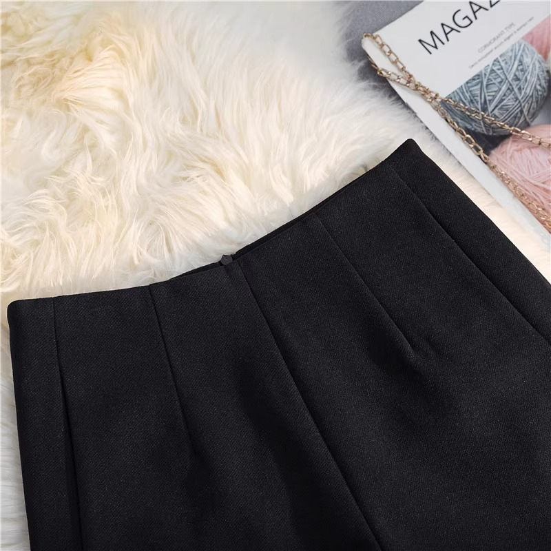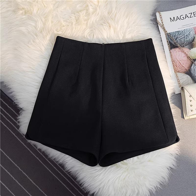 2025 가을 겨울 별빛 무늬 모직 반바지 여성용 봄 가을 외출용 하이웨이스트 블랙 A라인 와이드 팬츠스토어 가기