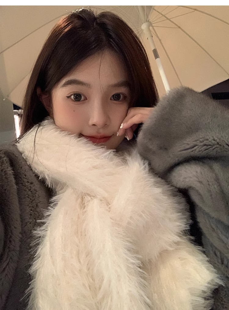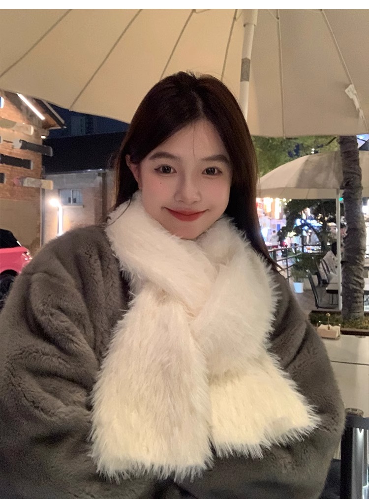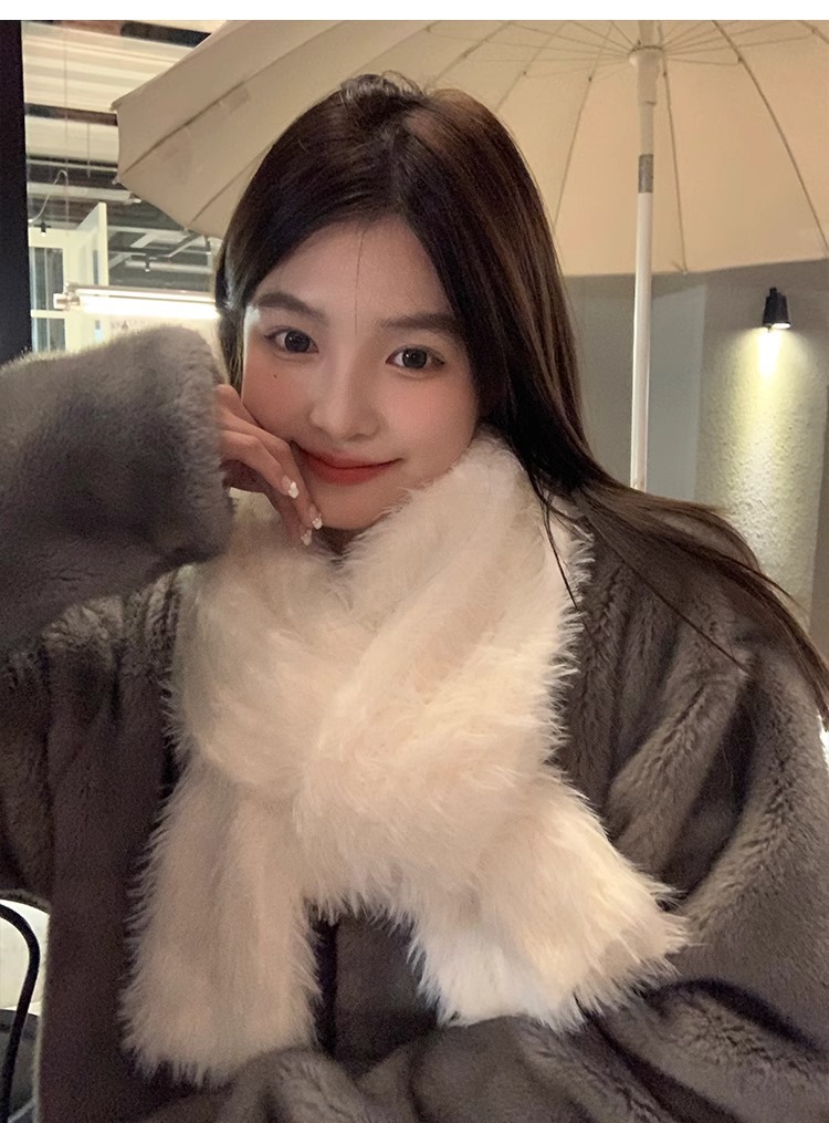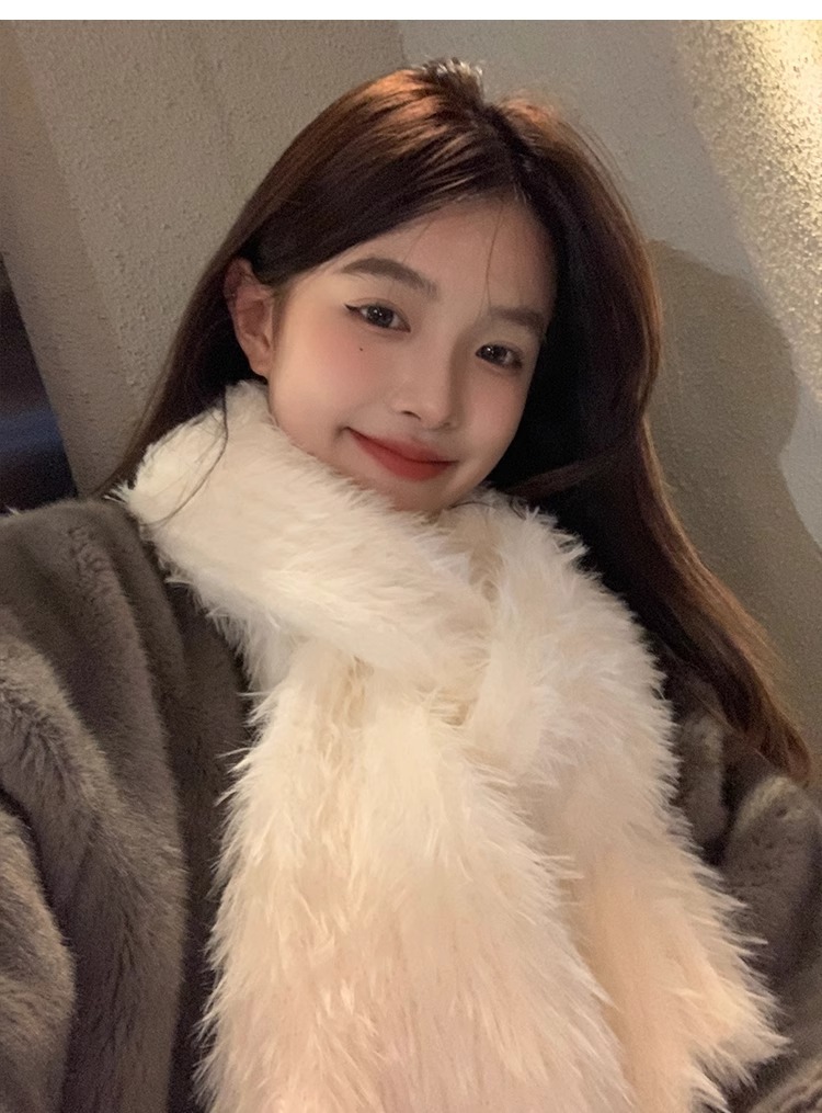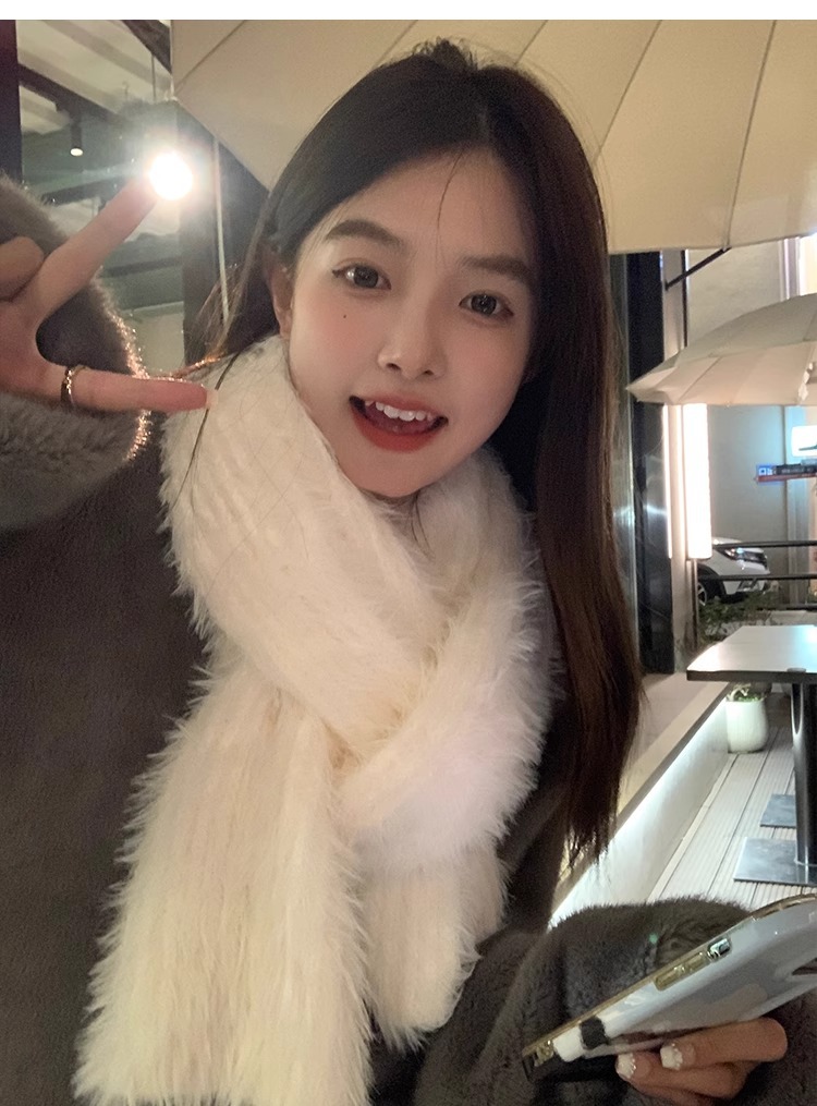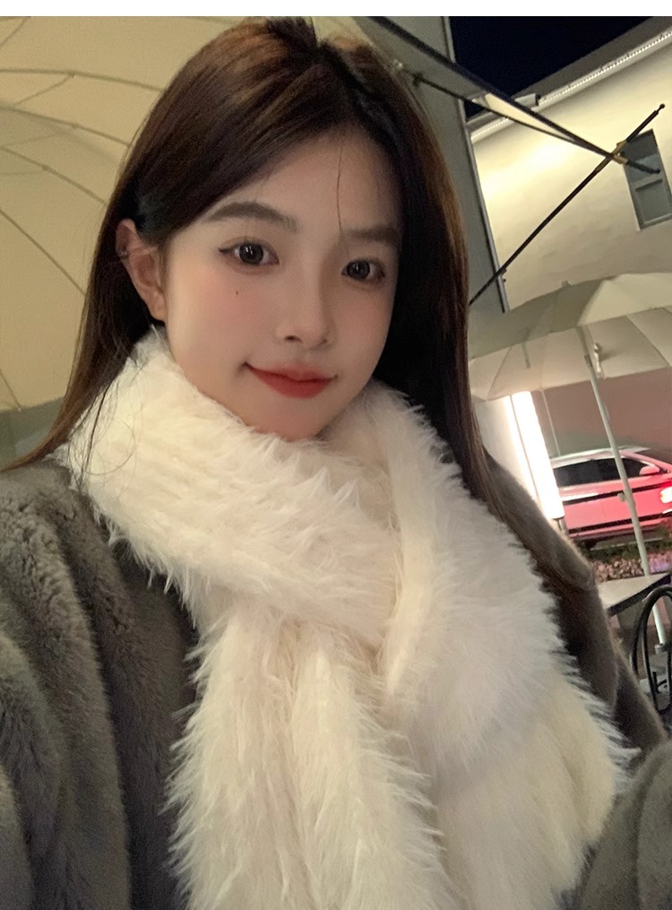 봉제 화이트 스카프 여자 겨울 2024 새로운 캐주얼 올매치 한국식 단색 고급 두꺼운 따뜻한 스카프스토어 가기