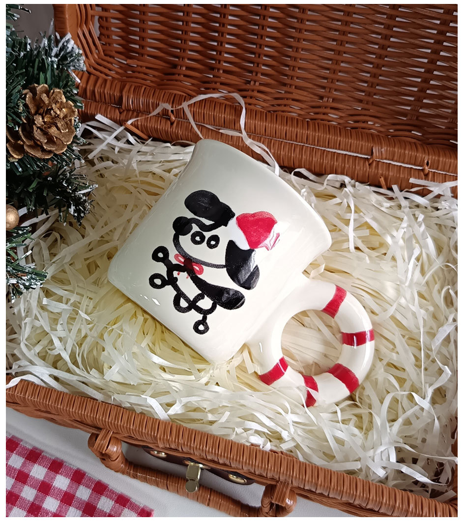 창조적 인 손으로 그린 크리스마스 트리 세라믹 머그잔 가정용 소녀 커피 컵 차 컵 휴일 선물 선물 컵