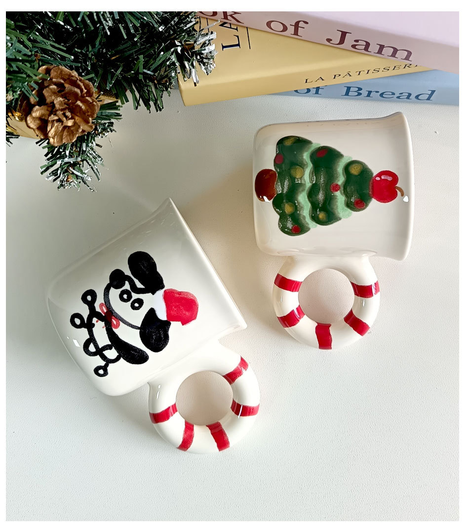 창조적 인 손으로 그린 크리스마스 트리 세라믹 머그잔 가정용 소녀 커피 컵 차 컵 휴일 선물 선물 컵스토어 가기