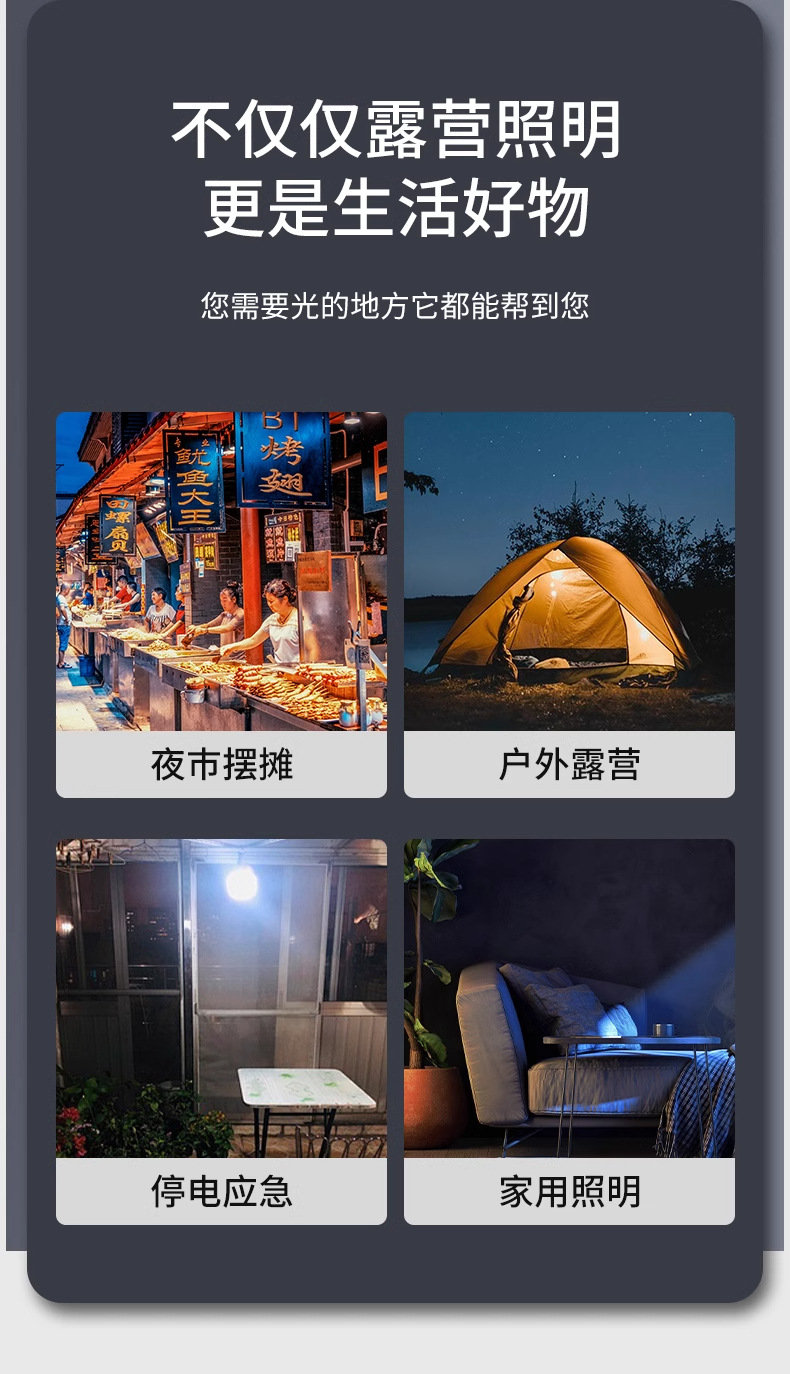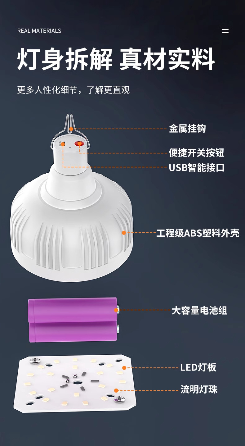 LED 충전식 전구 홈 모바일 야시장 스톨 조명 긴 내구성 비상 야외 캠핑 라이트