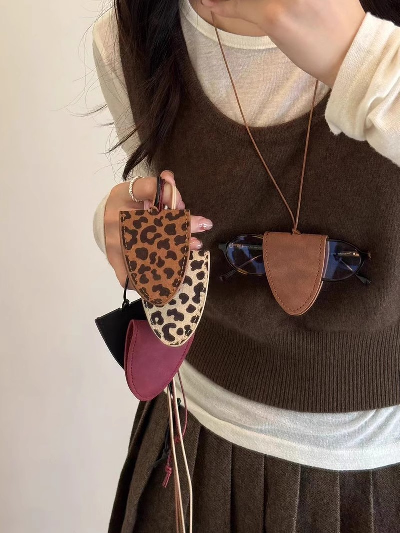 레오파드 무늬 다기능 자기 흡입 가죽 목 안경 홀더 목걸이 여성 여행 휴대용 보관 선글라스 홀더 끈 액세서리