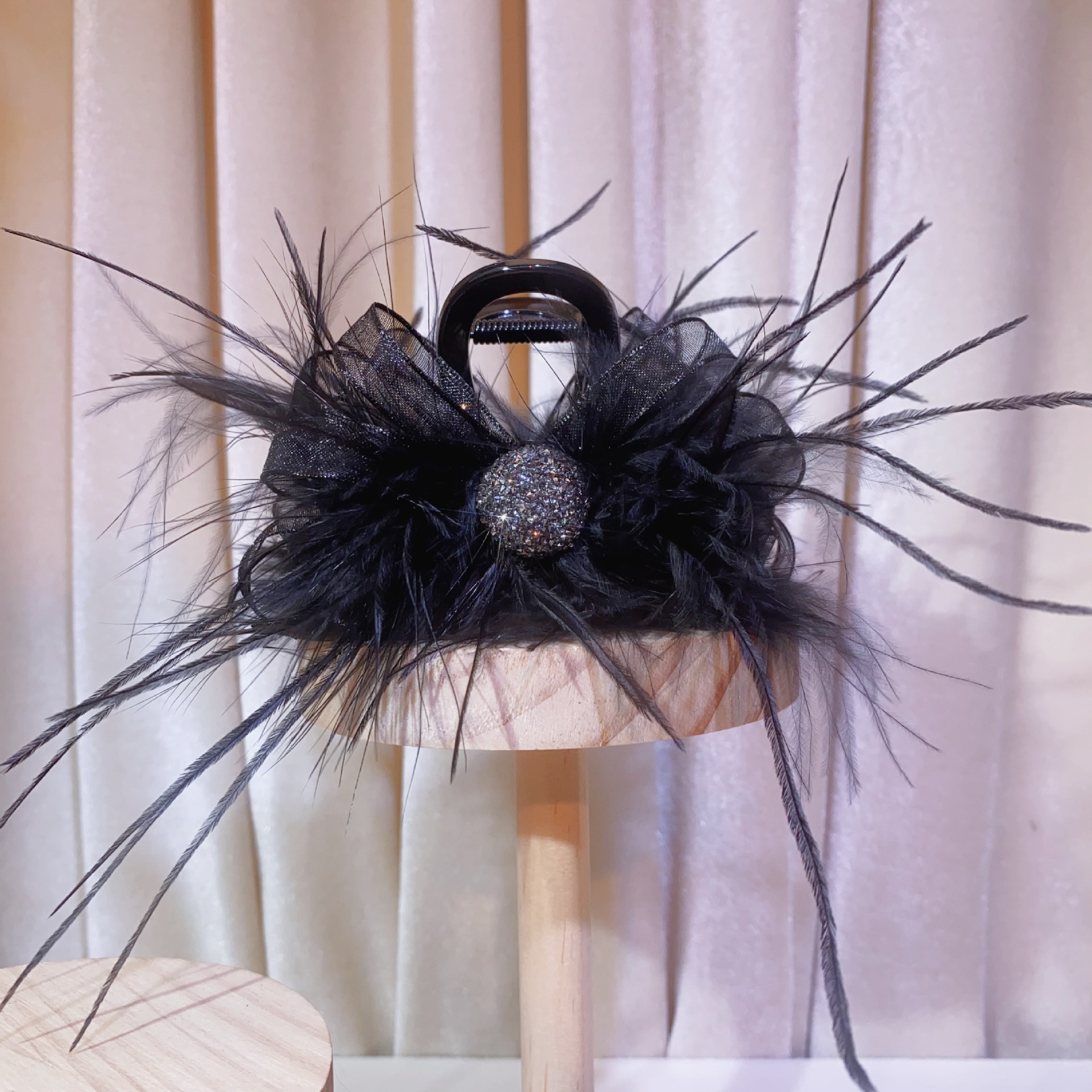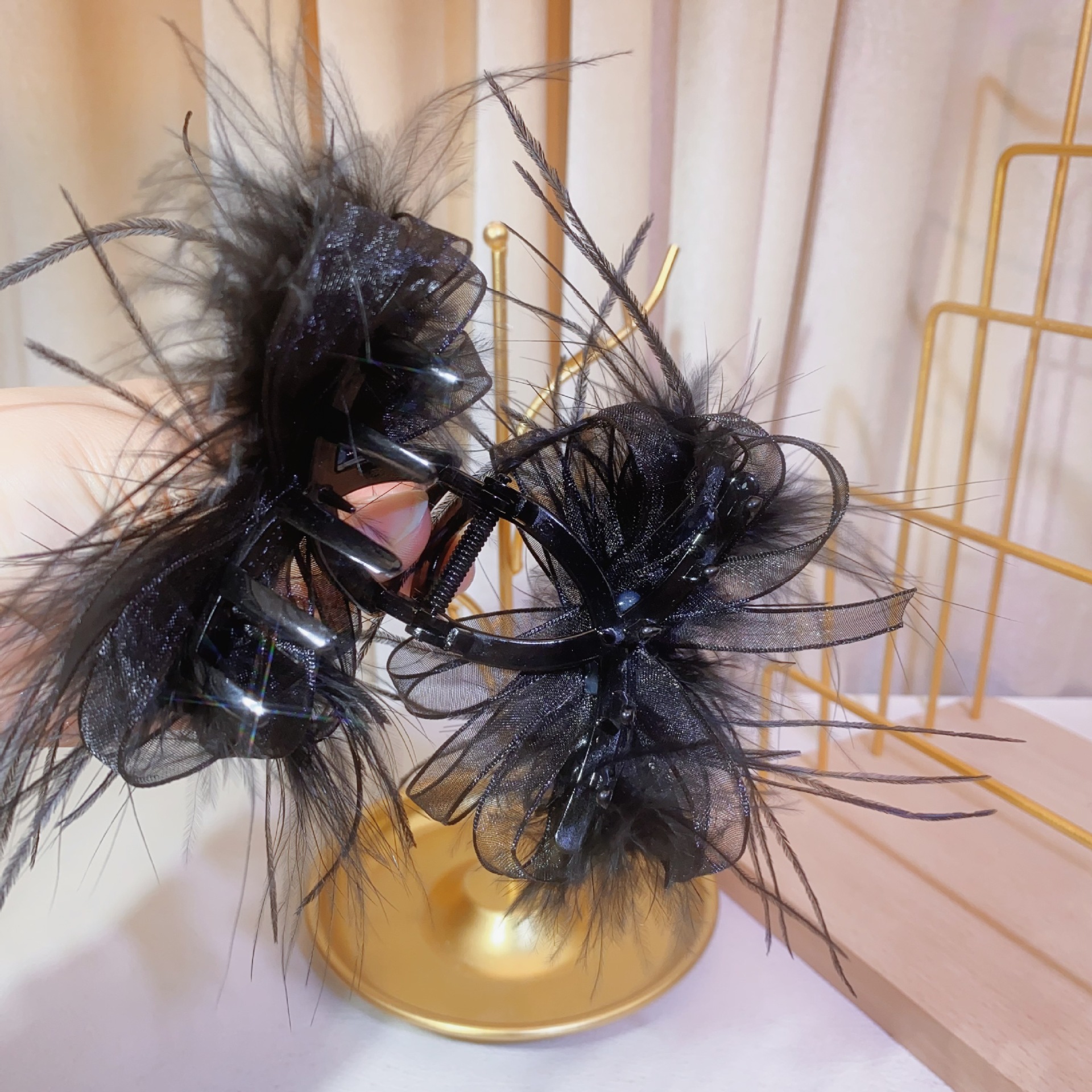 고급 깃털 8cm 잡아 클립 절묘한 공주 다시 머리 높은 포니 테일 활 머리 머리띠 상어 클립