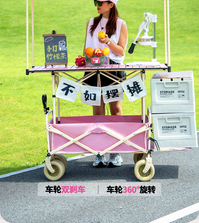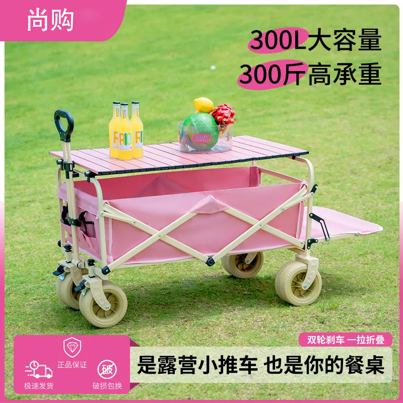 캠핑 카트 접이식 야외 핸드 푸시 피크닉 자동차 휴대용 캠프 트레일러 풀 로드 다기능 캠핑 스톨 카