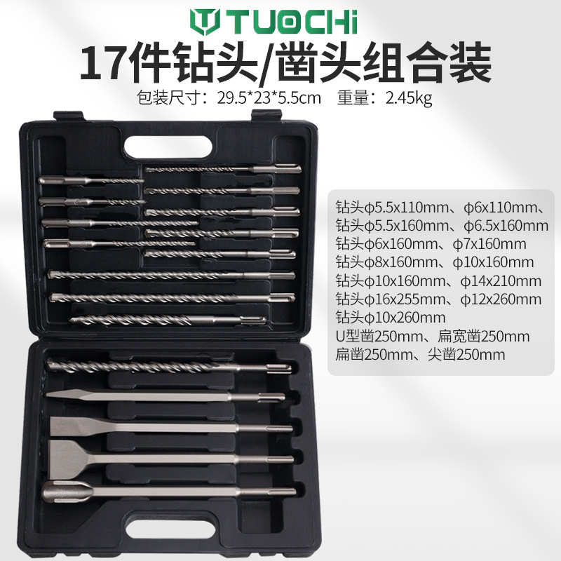 17 피스 라운드 생크 팁 끌 플랫 끌 U 자형 끌 타악기 드릴 벽 펀치 콘크리트 세트 전기 해머 드릴 혼합스토어 가기