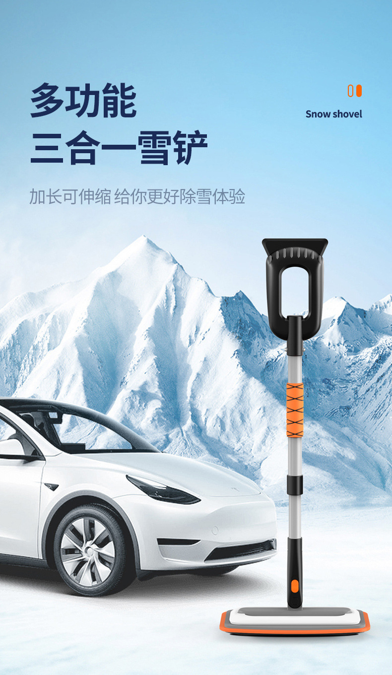 汽车多功能除雪铲 可伸缩车载清雪铲 铝合金除冰雪铲除霜铲刮雪板