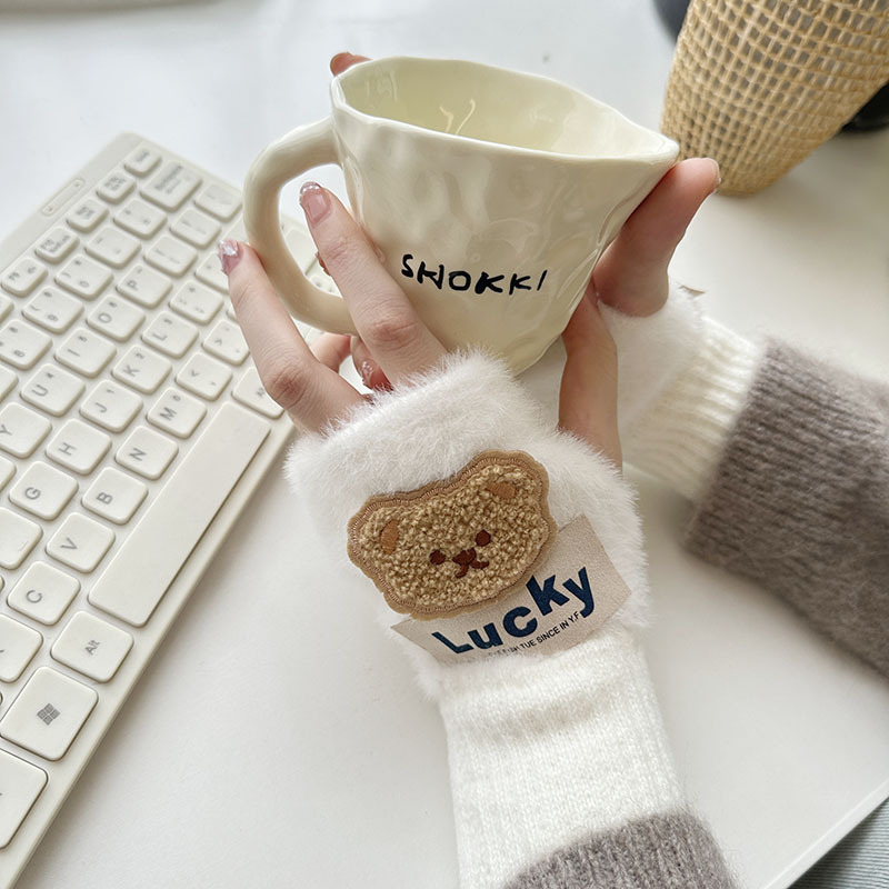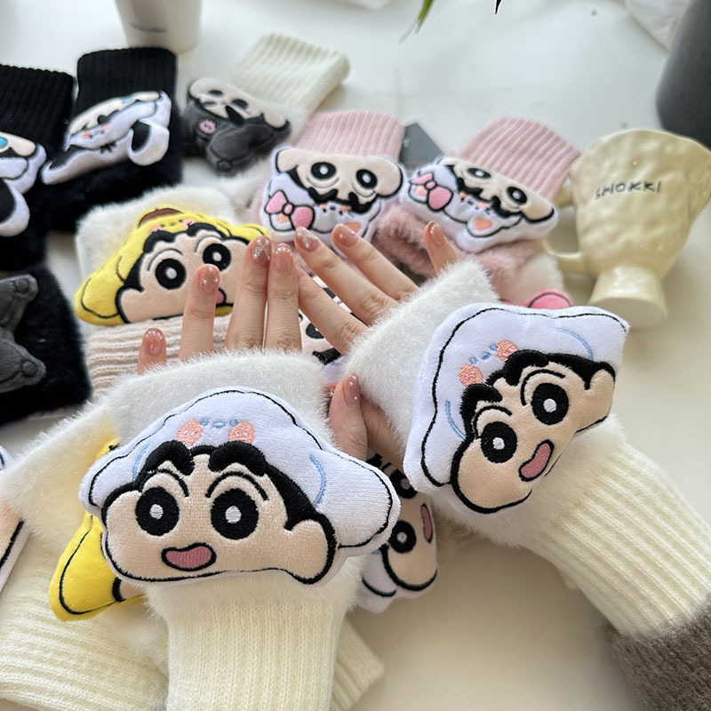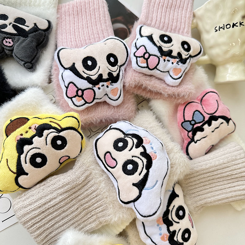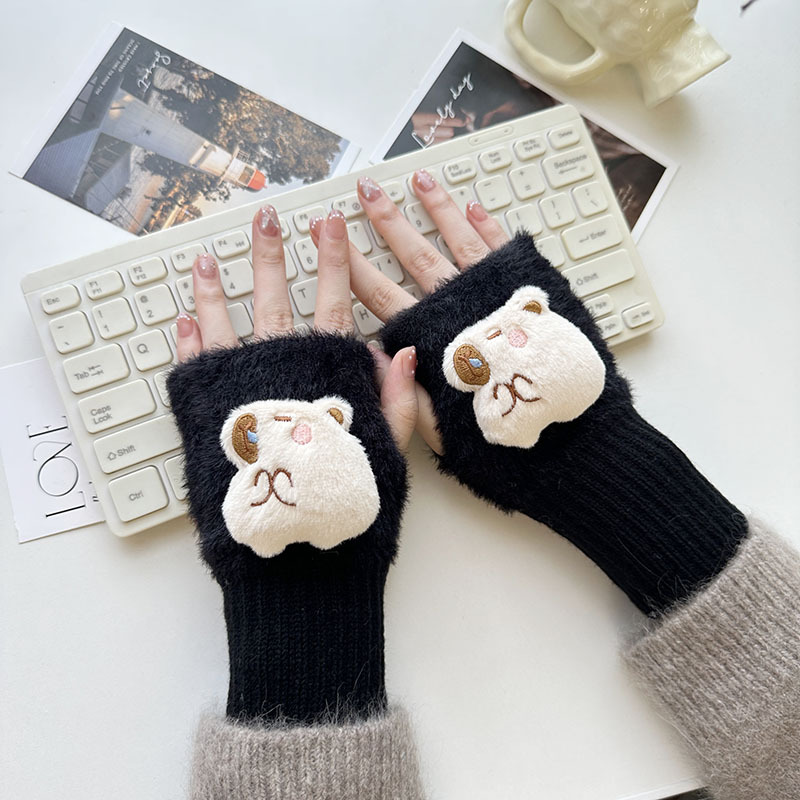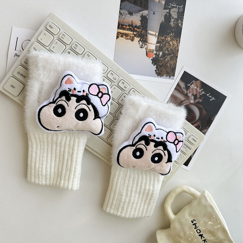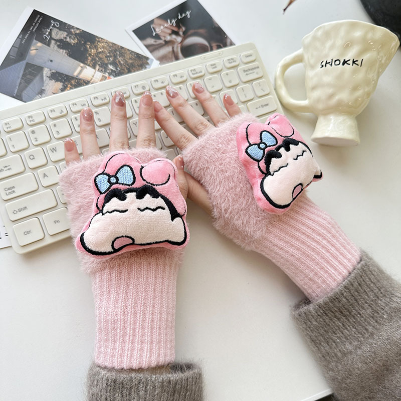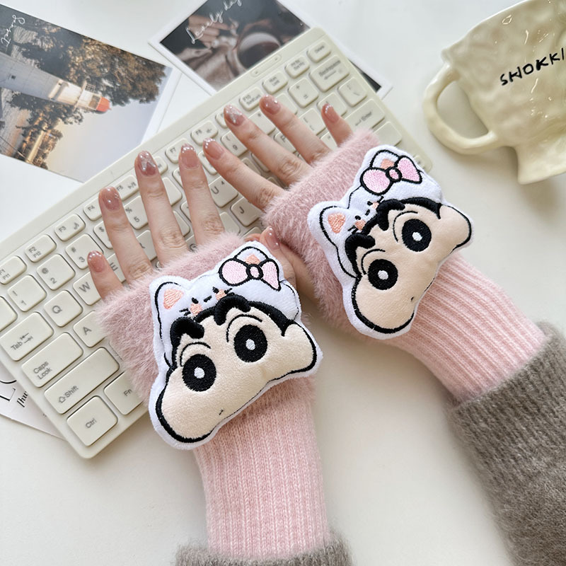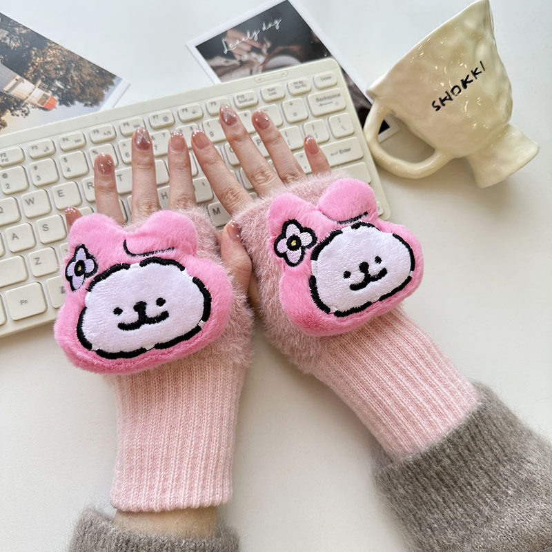 2024 새로운 봉제 반 손가락 장갑 만화 니트 손목 브래서 두꺼운 따뜻한 장갑 소녀 사무실 학생 글쓰기스토어 가기