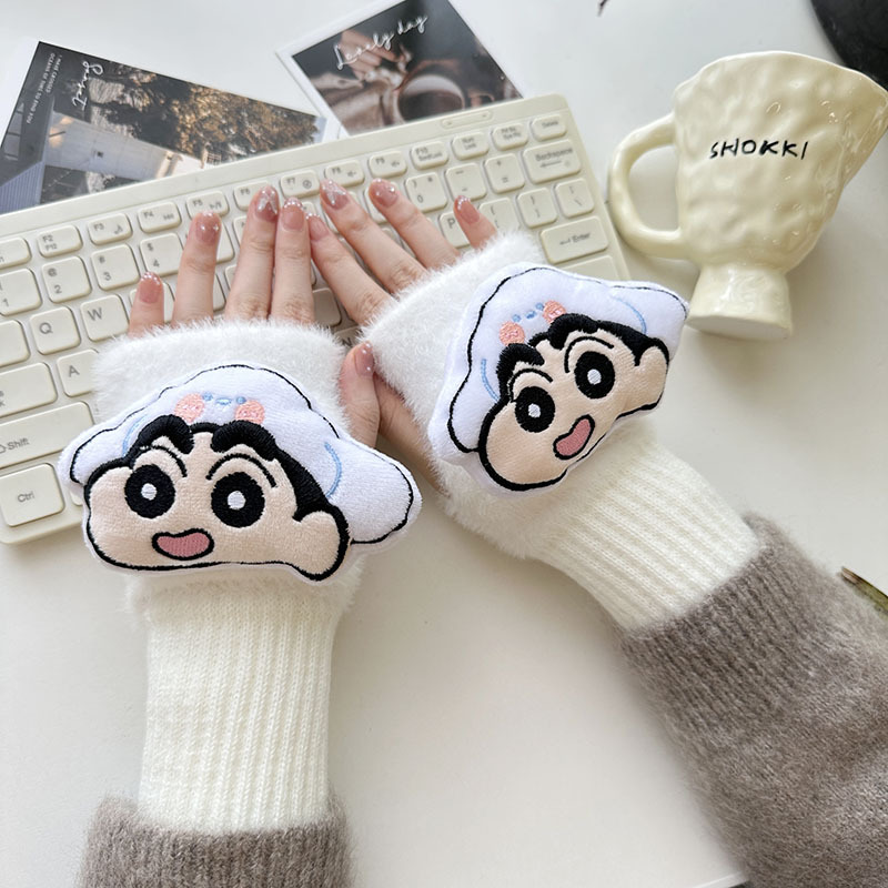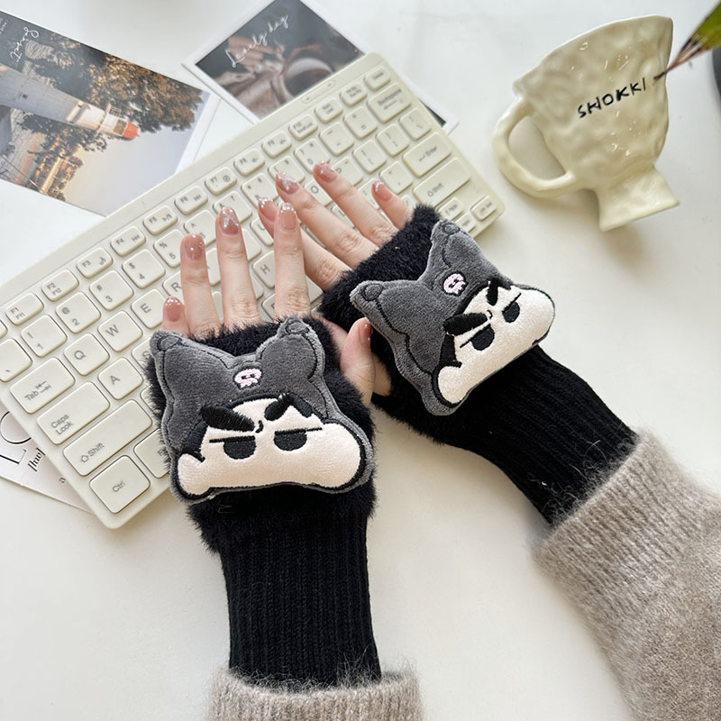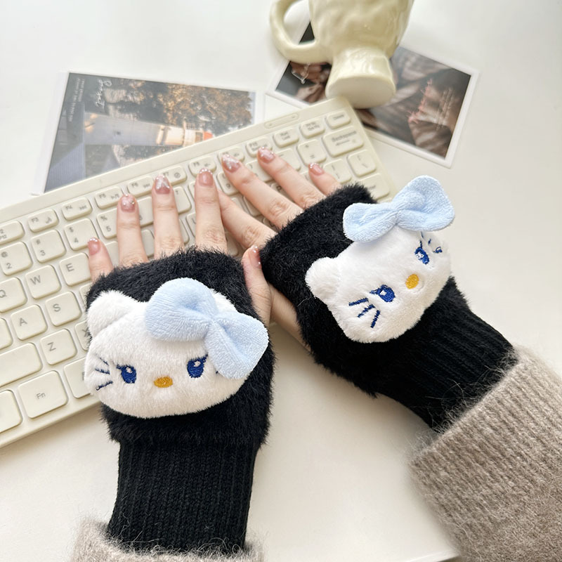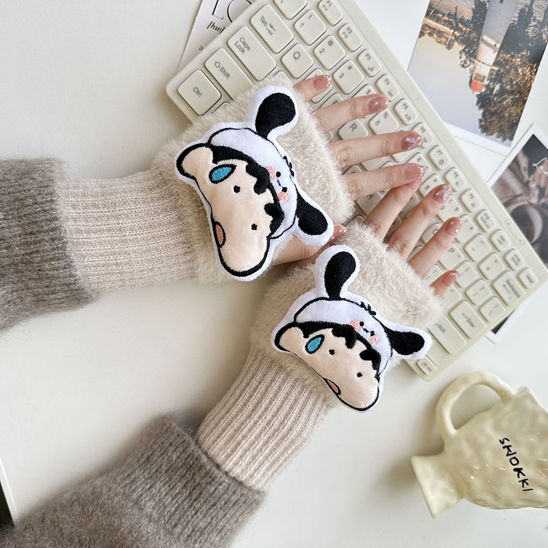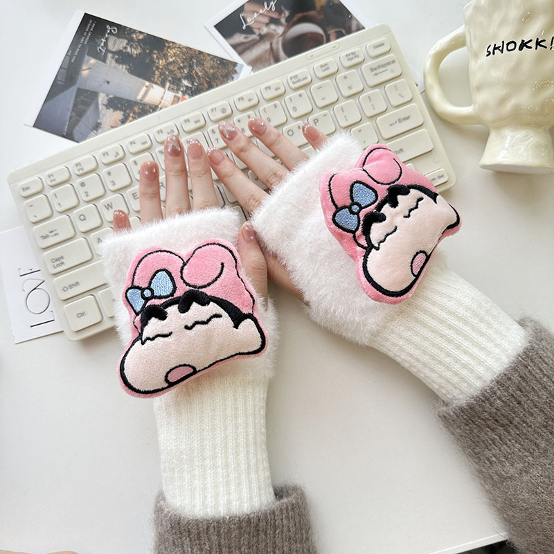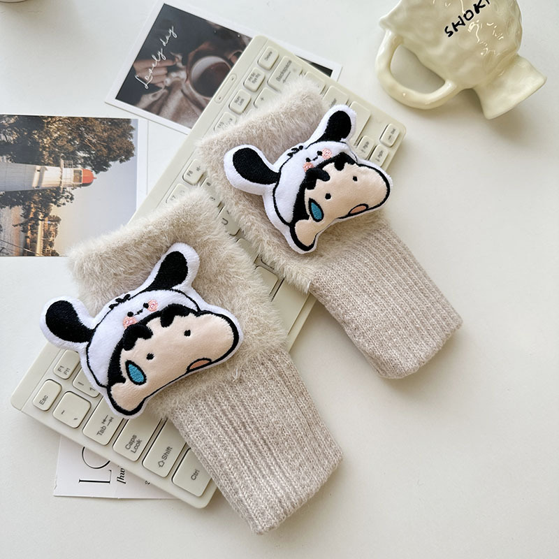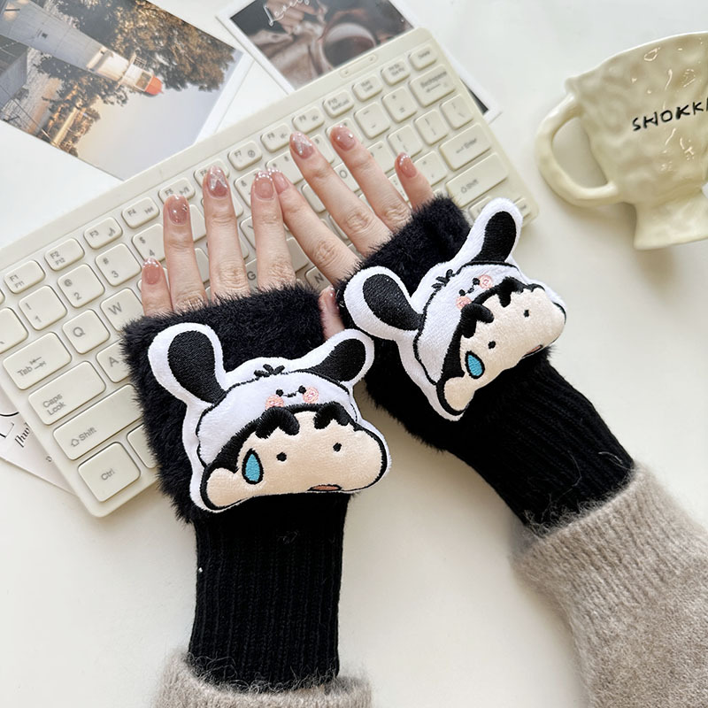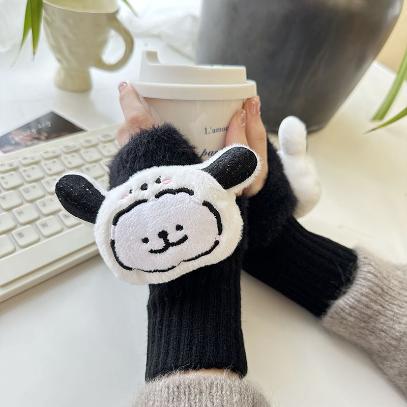 2024 새로운 봉제 반 손가락 장갑 만화 니트 손목 브래서 두꺼운 따뜻한 장갑 소녀 사무실 학생 글쓰기