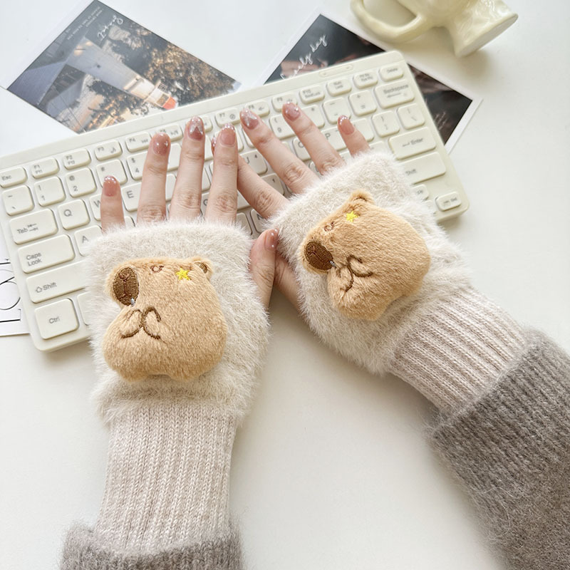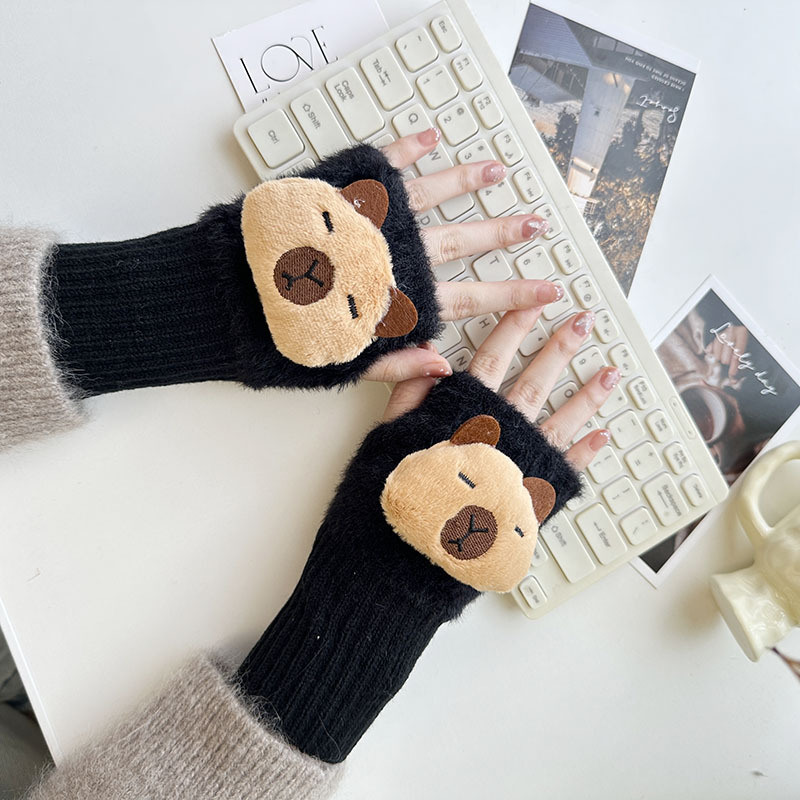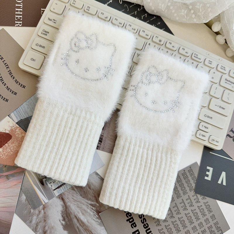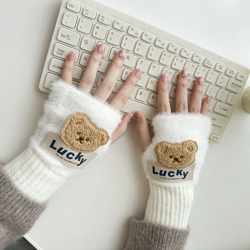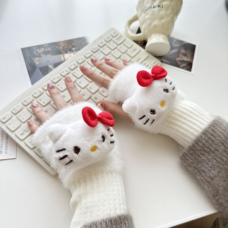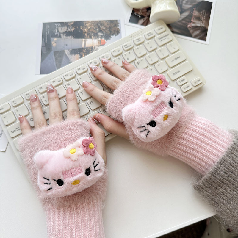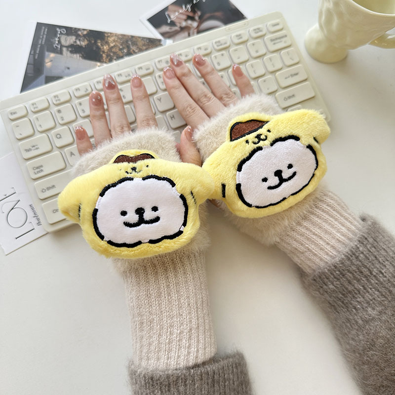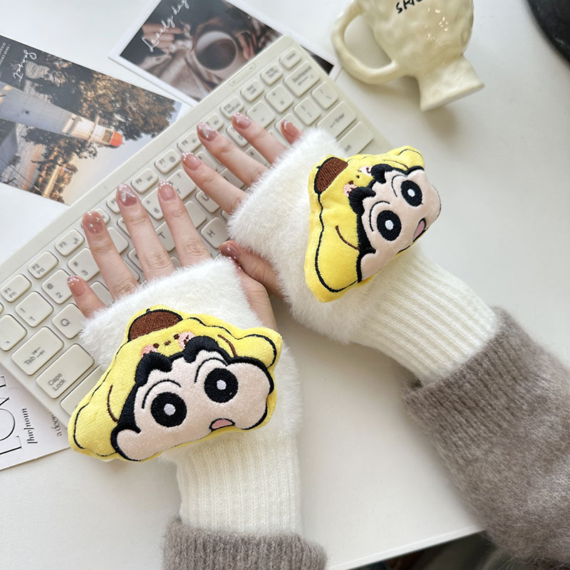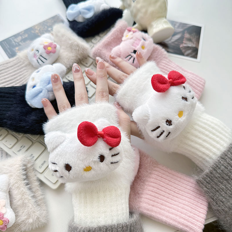 2024 새로운 봉제 반 손가락 장갑 만화 니트 손목 브래서 두꺼운 따뜻한 장갑 소녀 사무실 학생 글쓰기