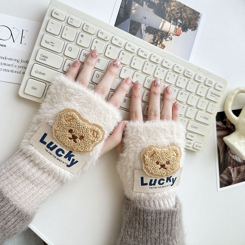 • 럭키베어 반손가락장갑-베이지
