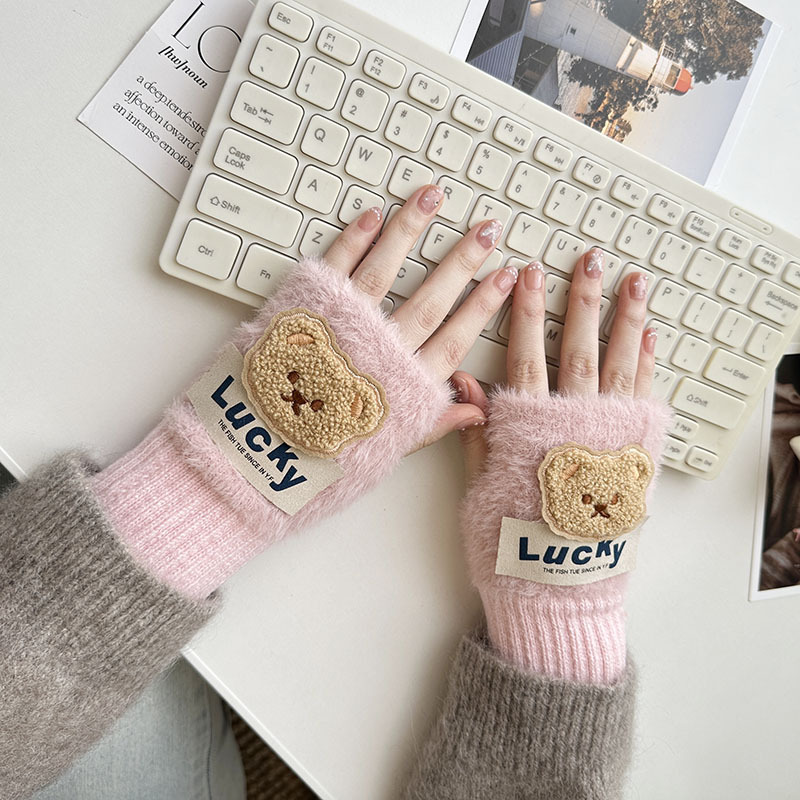 • 럭키베어 반손가락 장갑-핑크
