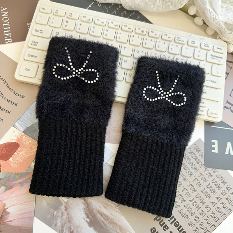 • 핫픽스 큐빅 나비 리본 반장갑 - 블랙