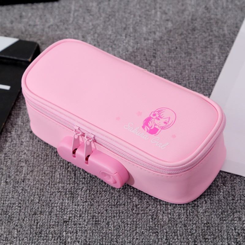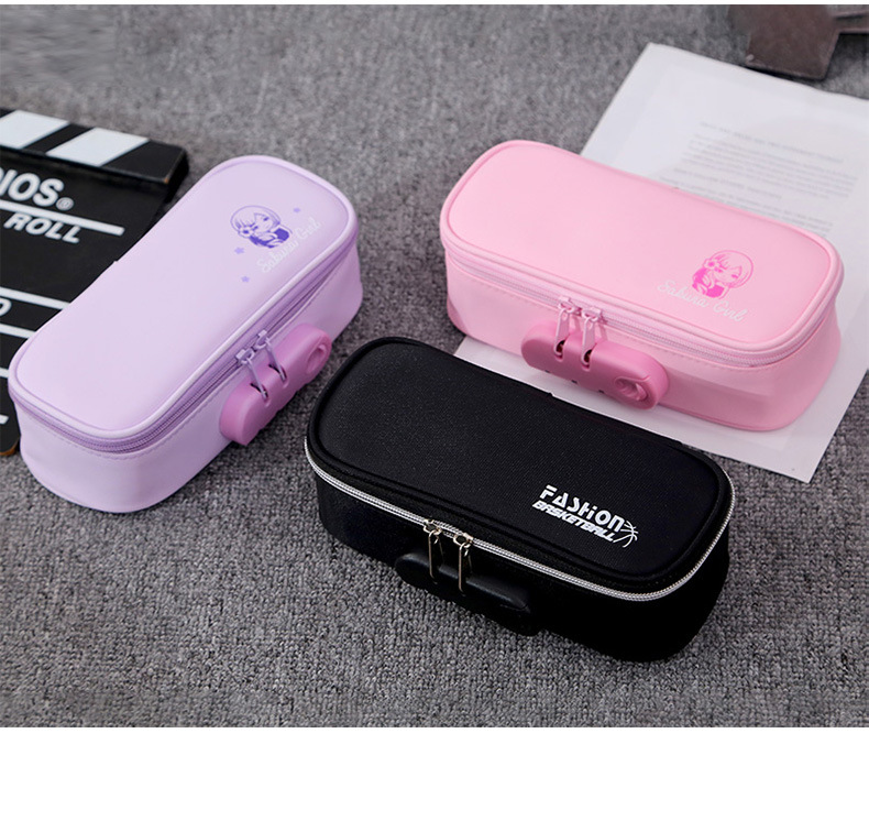 인터넷 연예인 비밀번호 문구 상자 솔리드 컬러 여학생을위한 대용량 연필 케이스 초등학교 중학교 소년 및 어린이를위한 대용량 연필 가방