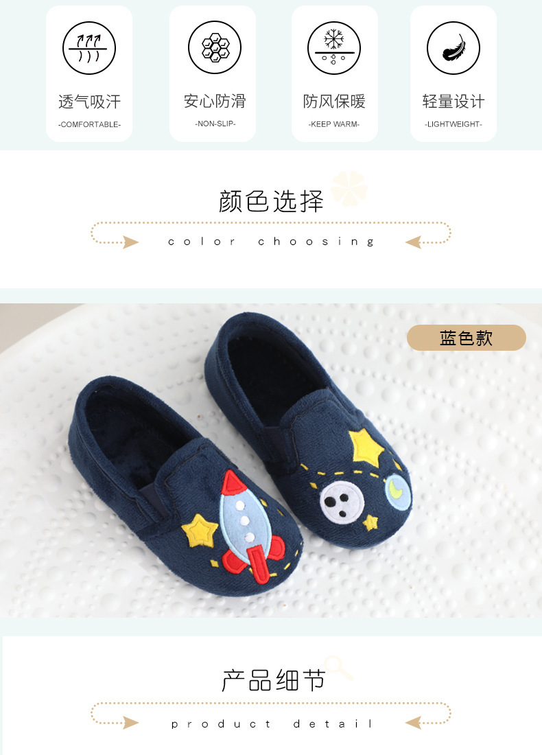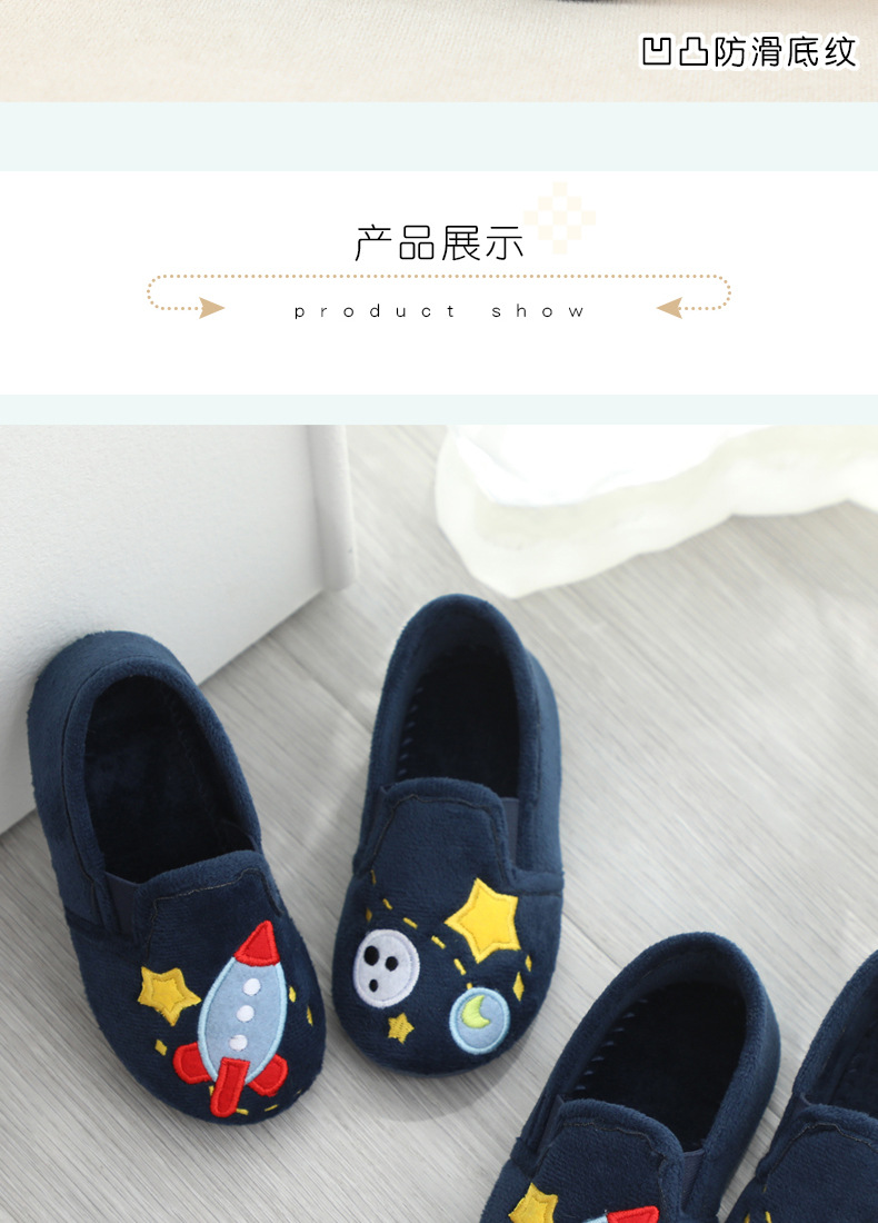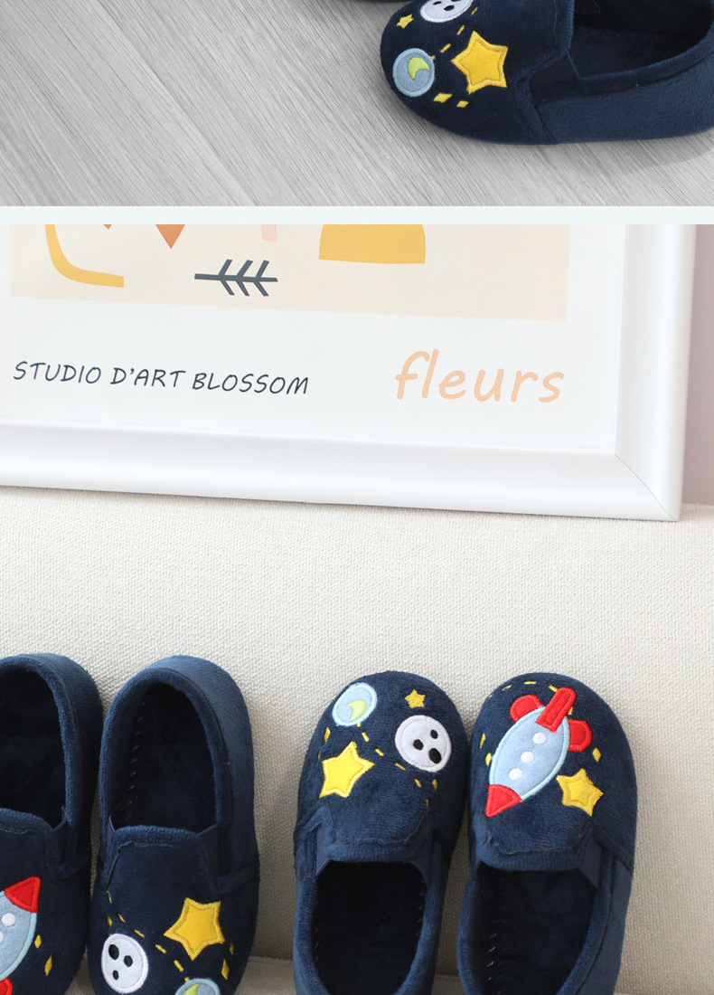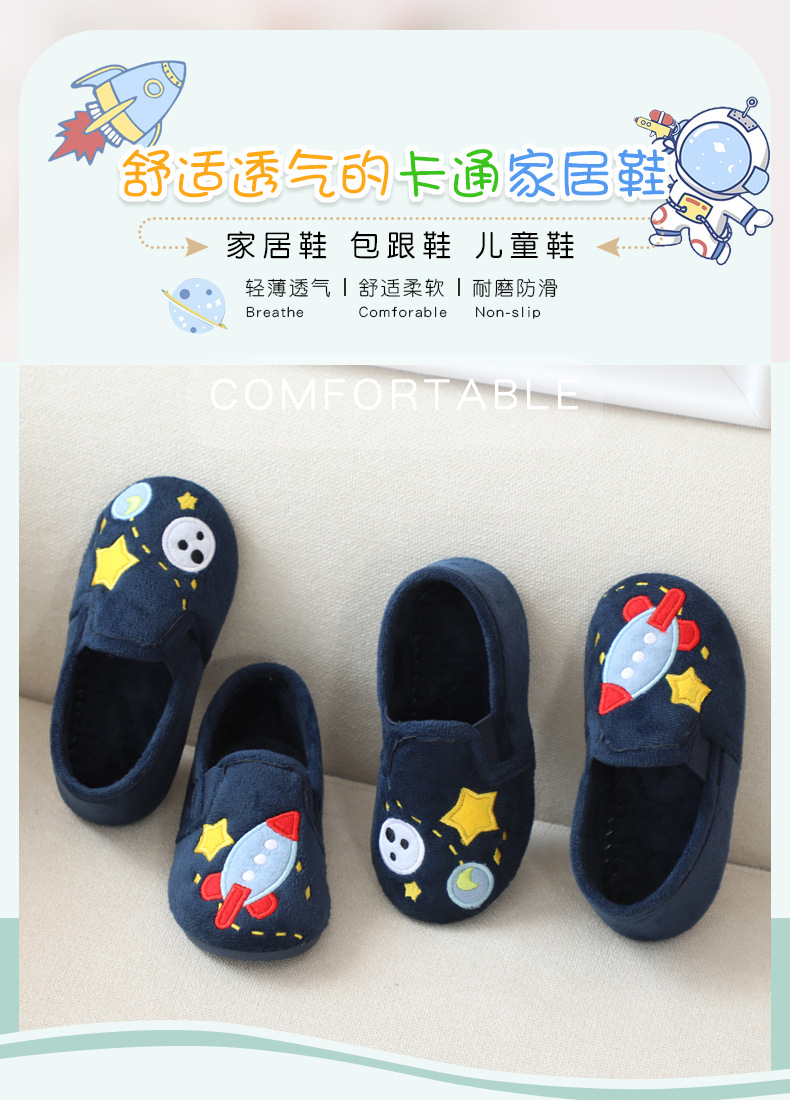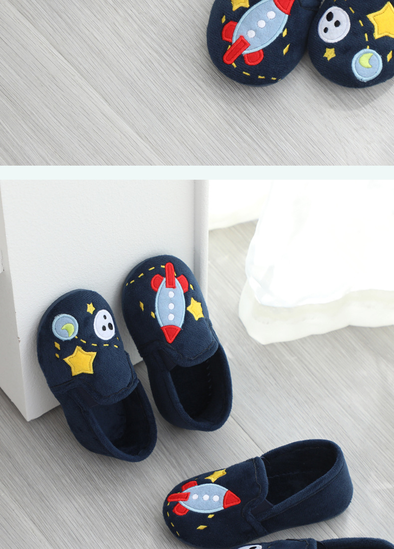 봄 가을 겨울 짧은 봉제 소년 로켓 행성 실내 홈 신발 미끄럼 방지 바닥 슬리퍼 소년 가방-뒤꿈치 코튼 신발스토어 가기