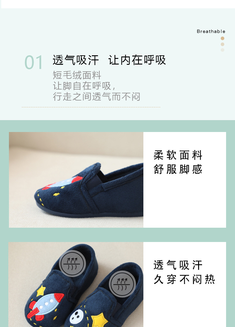 봄 가을 겨울 짧은 봉제 소년 로켓 행성 실내 홈 신발 미끄럼 방지 바닥 슬리퍼 소년 가방-뒤꿈치 코튼 신발
