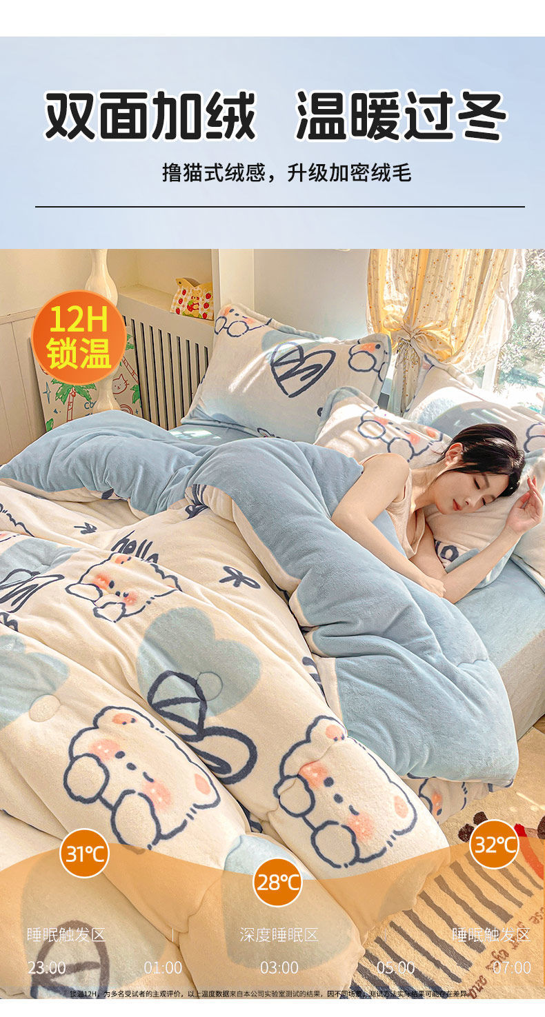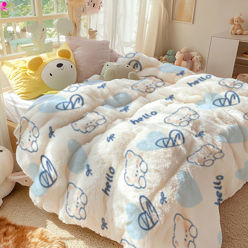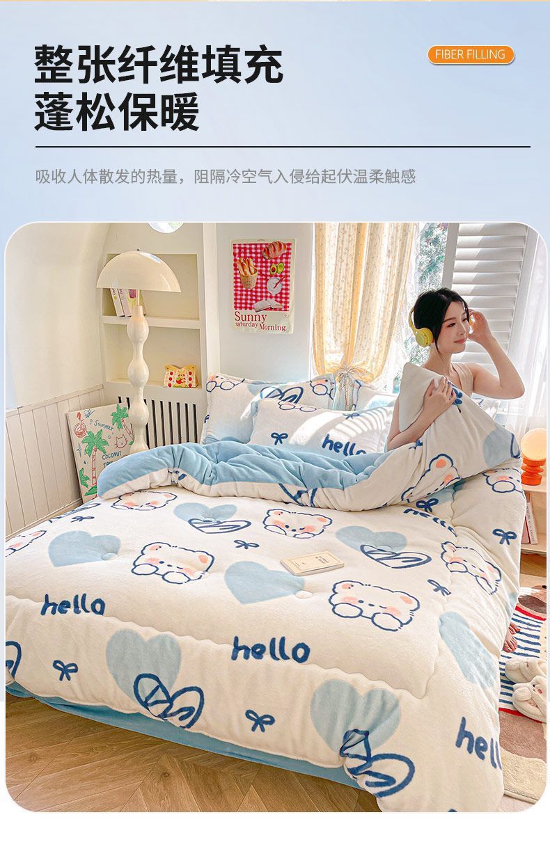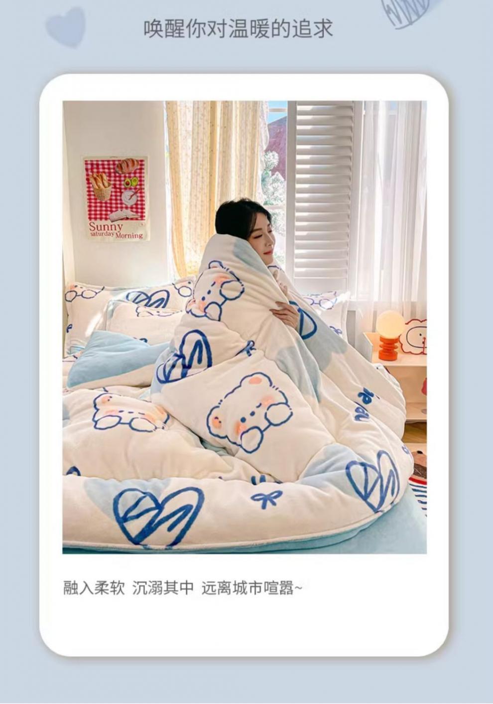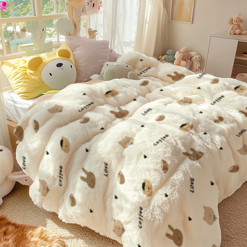 Q3Y 두꺼운 가을과 겨울 이불 패딩 따뜻한 2024 새로운 단일 우유 벨벳 이불 겨울 기모 방한 이불스토어 가기