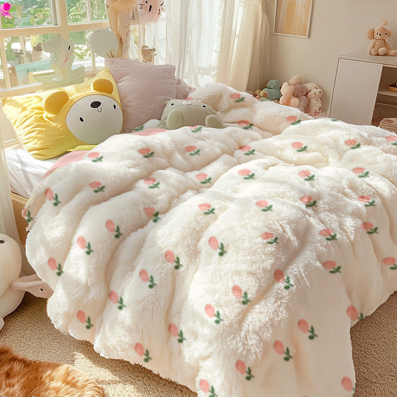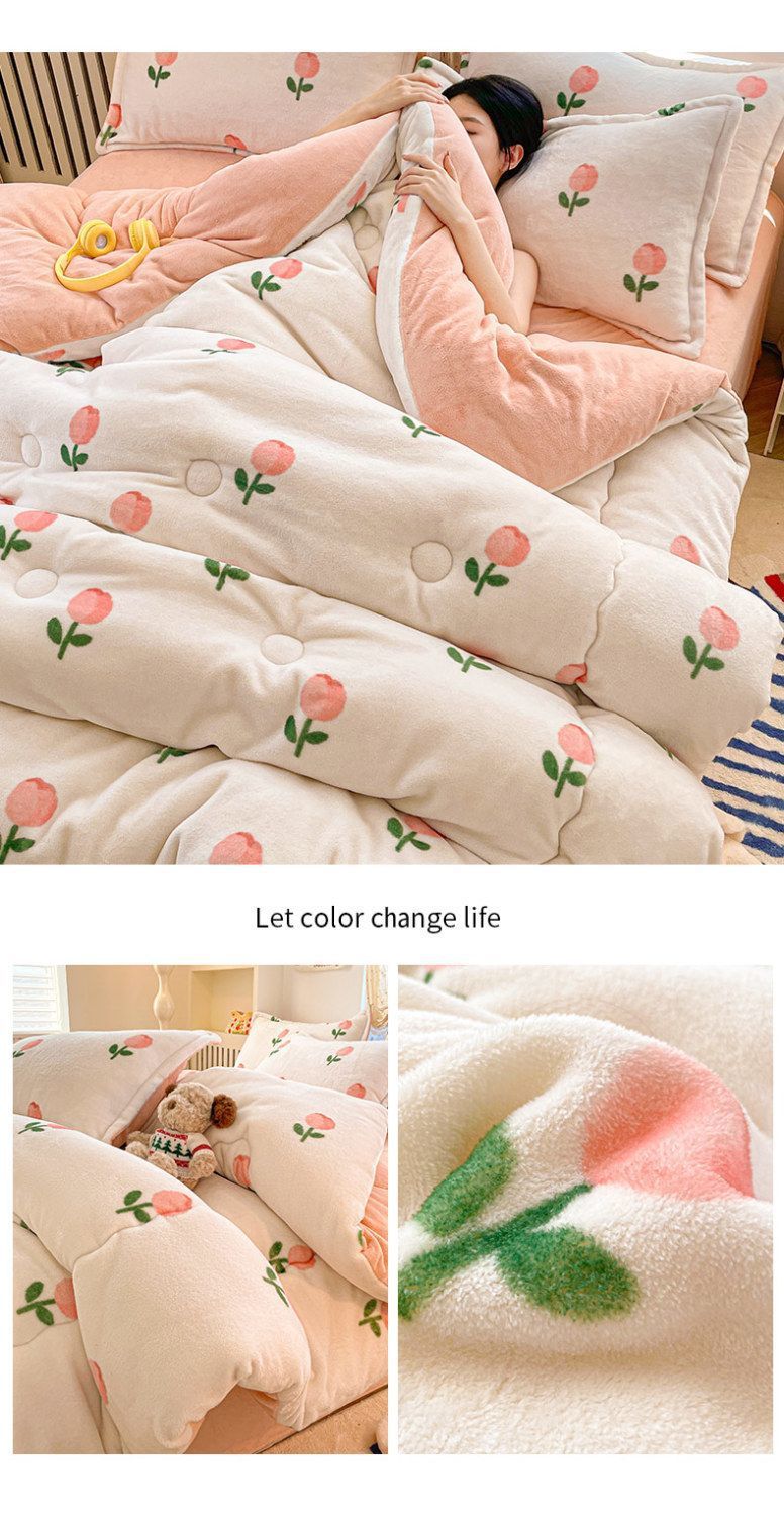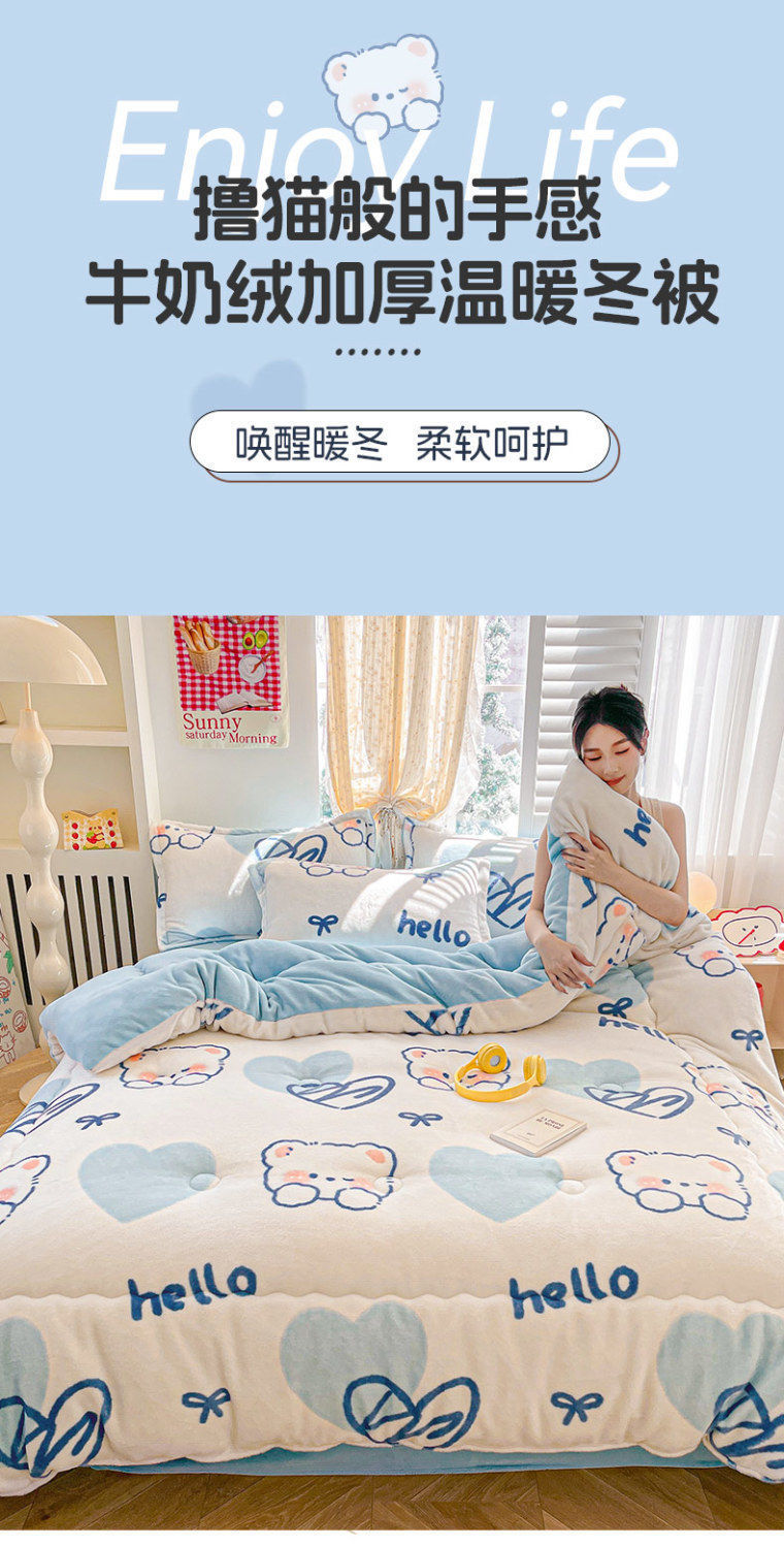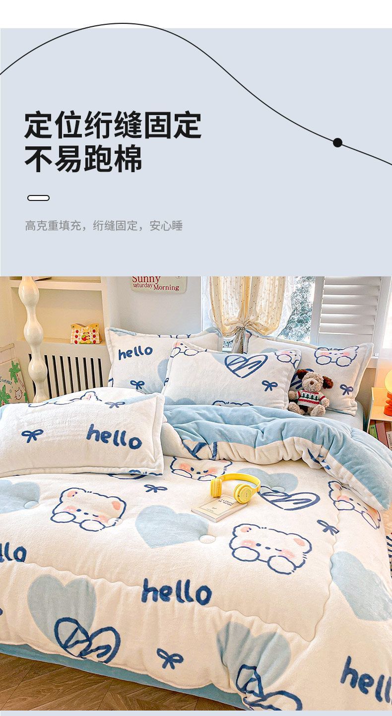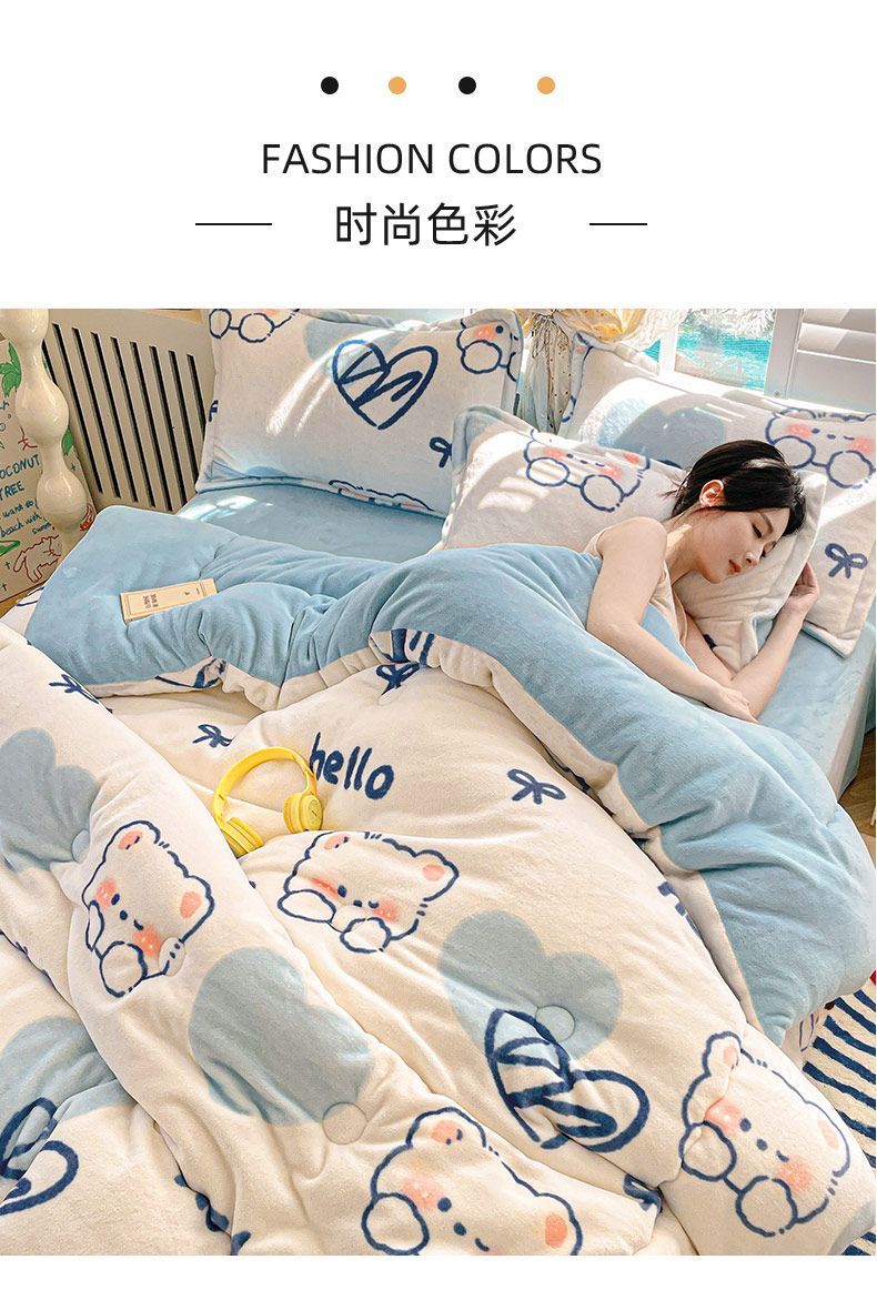 Q3Y 두꺼운 가을과 겨울 이불 패딩 따뜻한 2024 새로운 단일 우유 벨벳 이불 겨울 기모 방한 이불스토어 가기