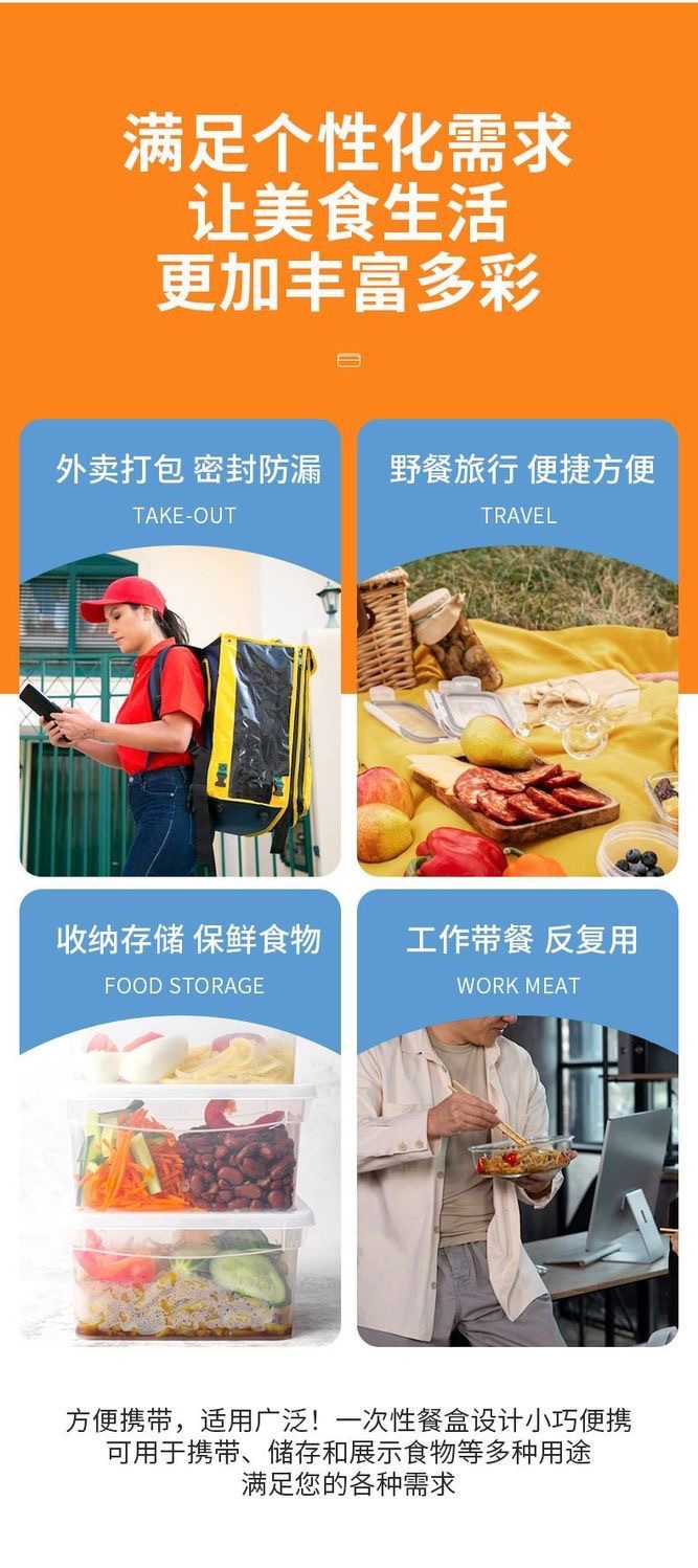 일회용 도시락 상자 뚜껑 도시락 두꺼운 가정용 도시락 상자 직사각형 투명 테이크 아웃 포장 상자 도매스토어 가기