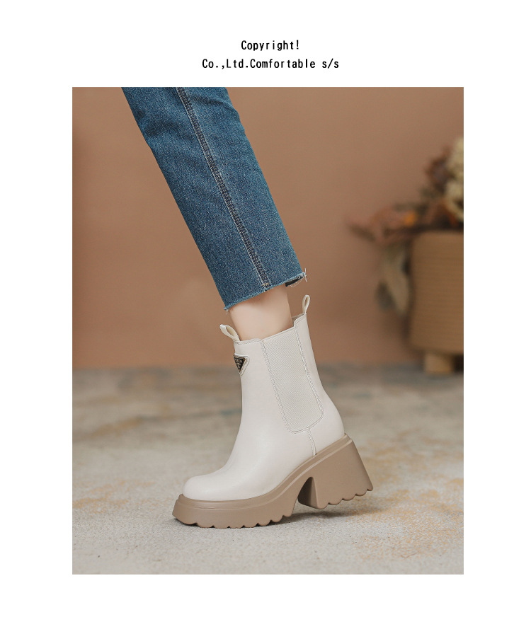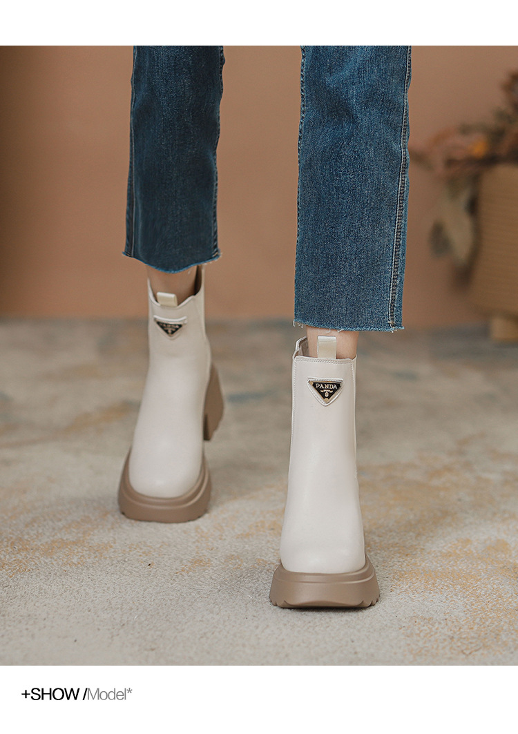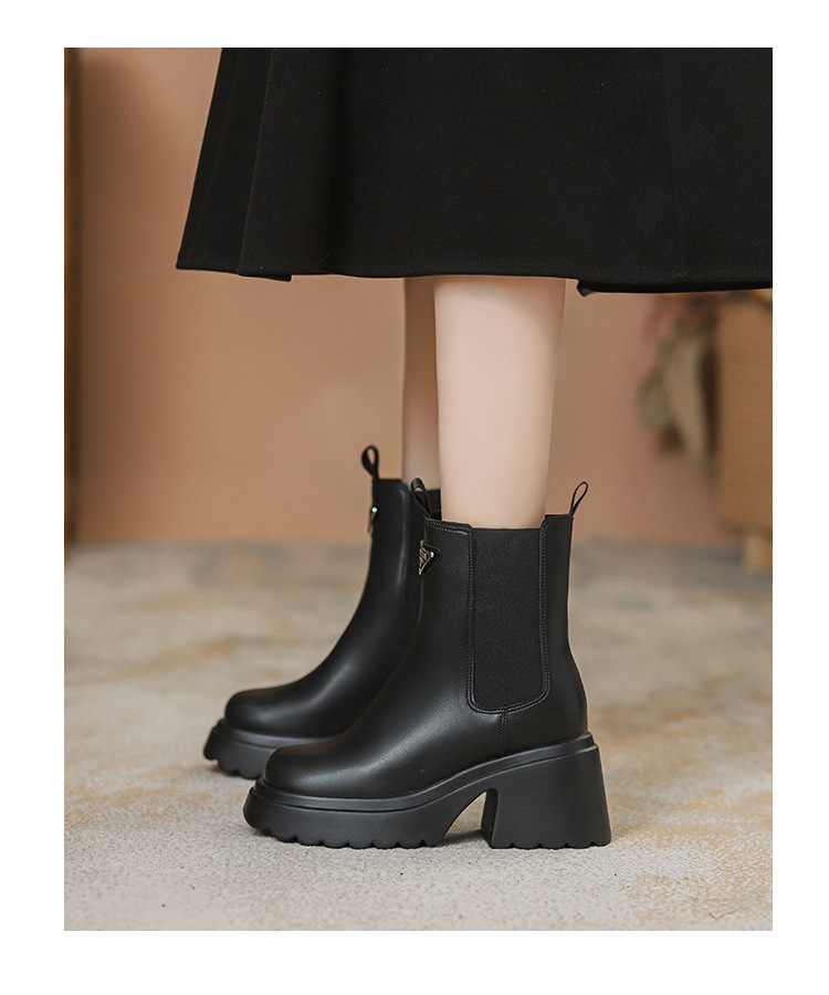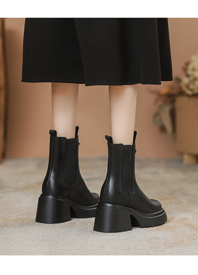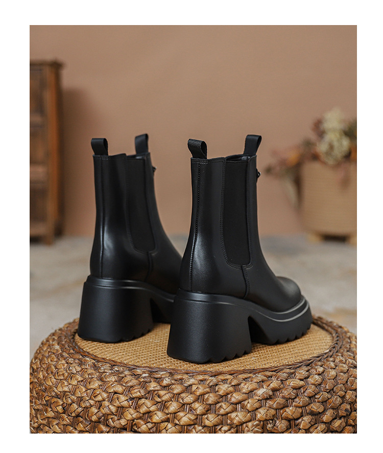 여성을위한 두꺼운 밑창 탄성 슬림 마틴 부츠 2025 새로운 영국 스타일 인터넷 연예인 작은 사람들을위한 다목적 짧은 부츠스토어 가기
