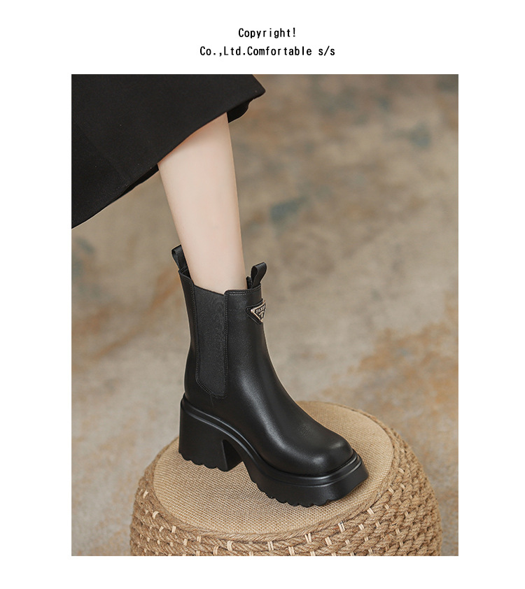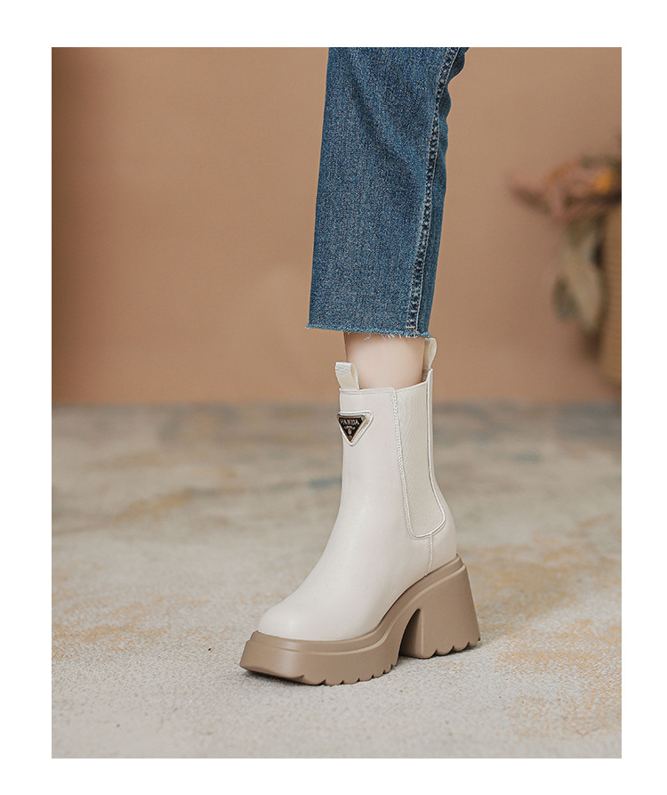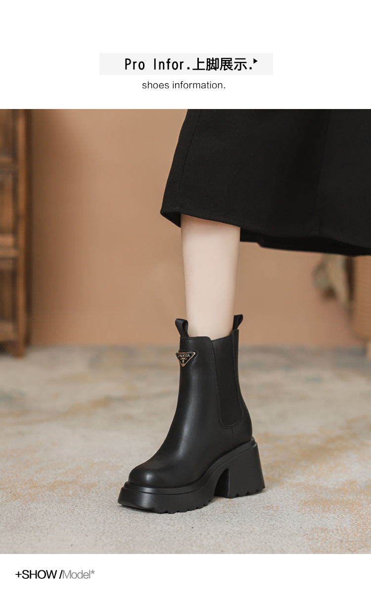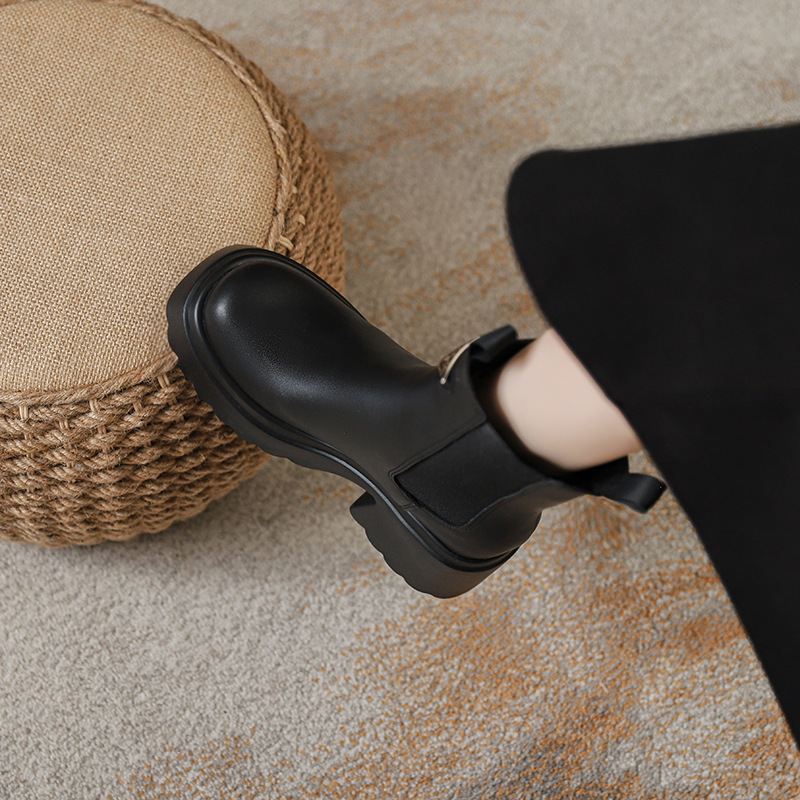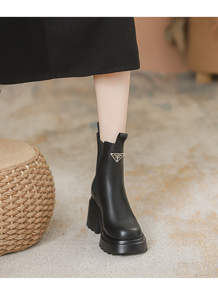 여성을위한 두꺼운 밑창 탄성 슬림 마틴 부츠 2025 새로운 영국 스타일 인터넷 연예인 작은 사람들을위한 다목적 짧은 부츠스토어 가기