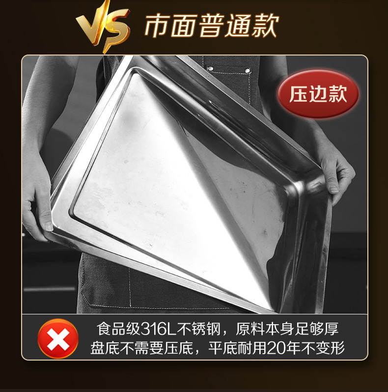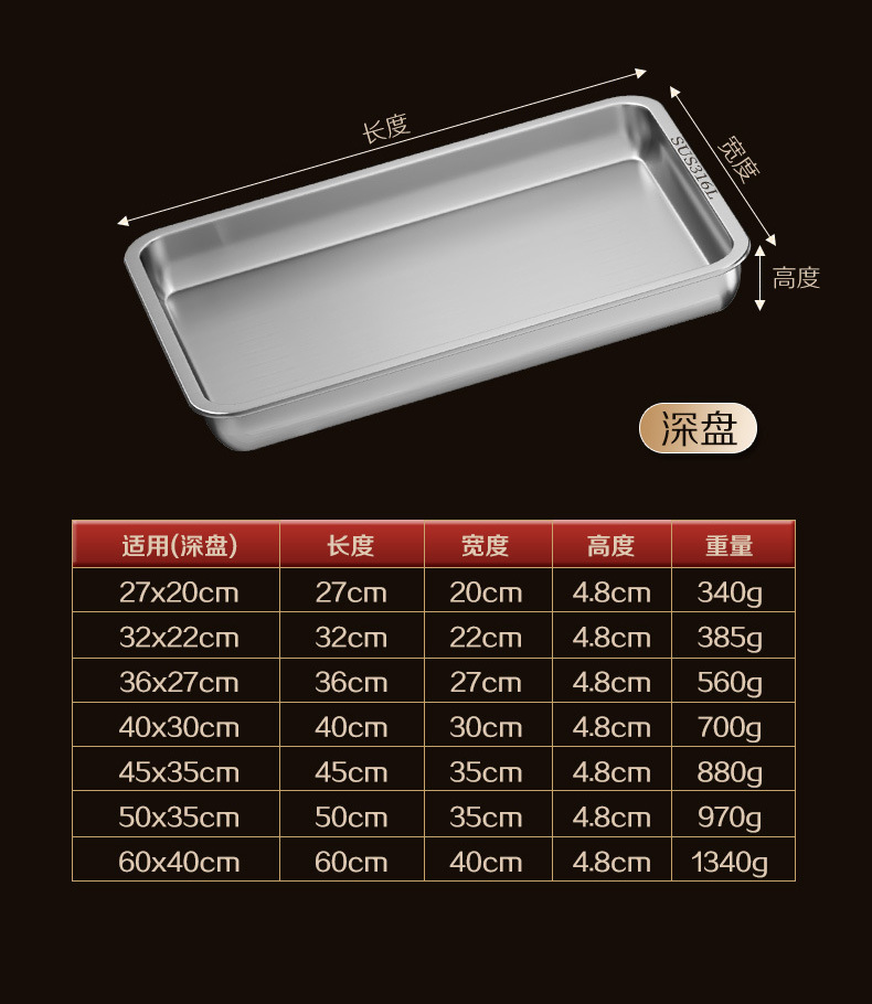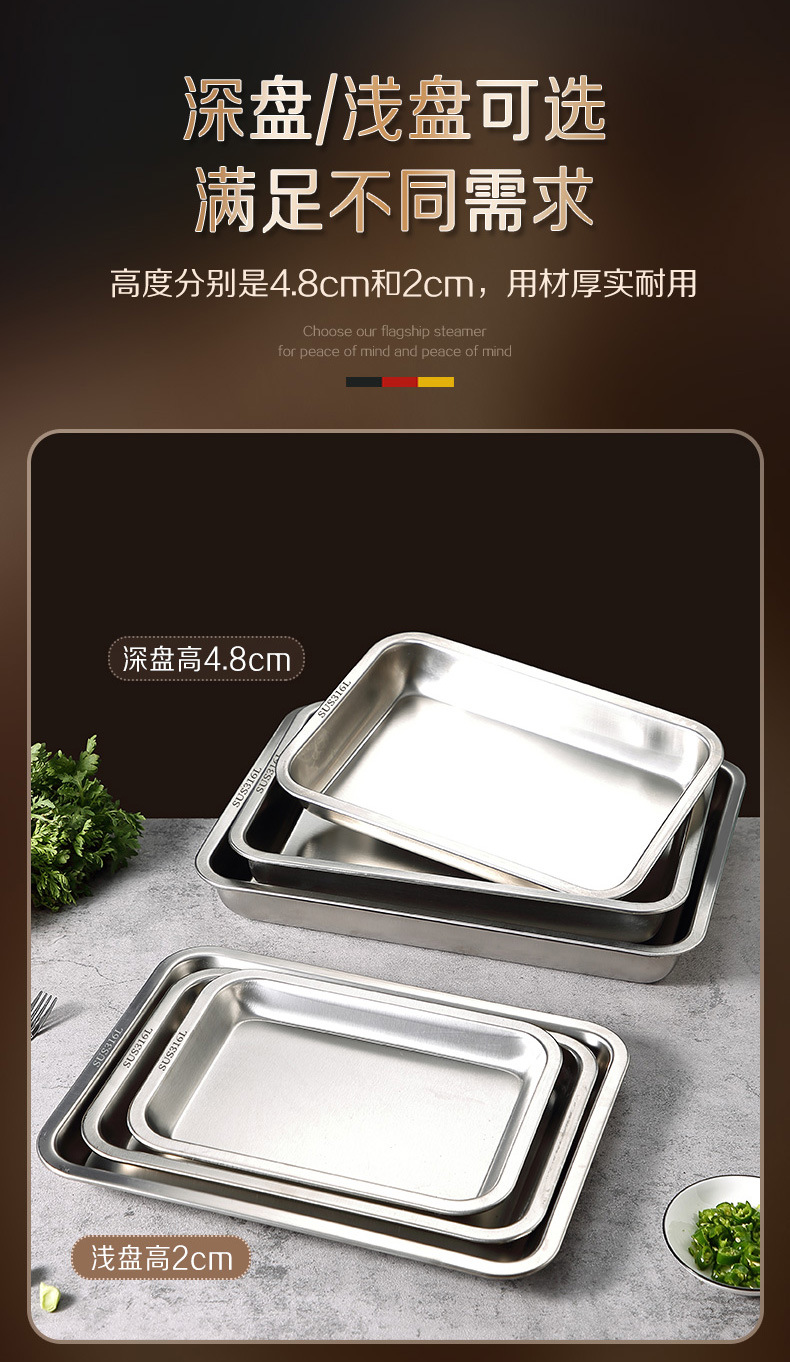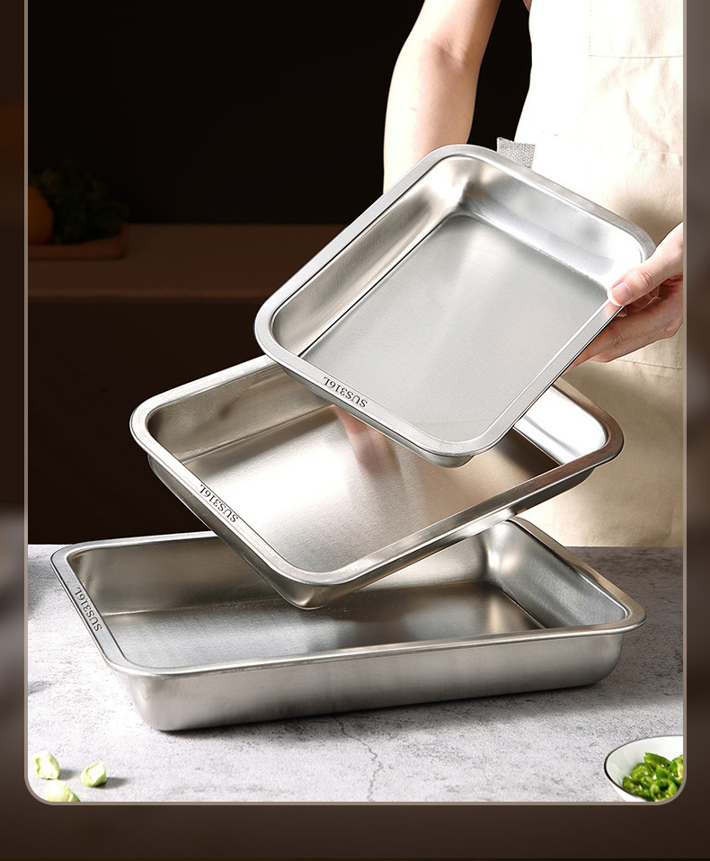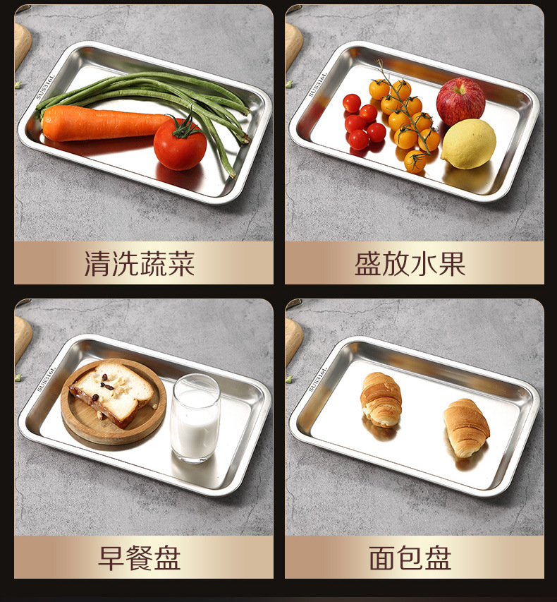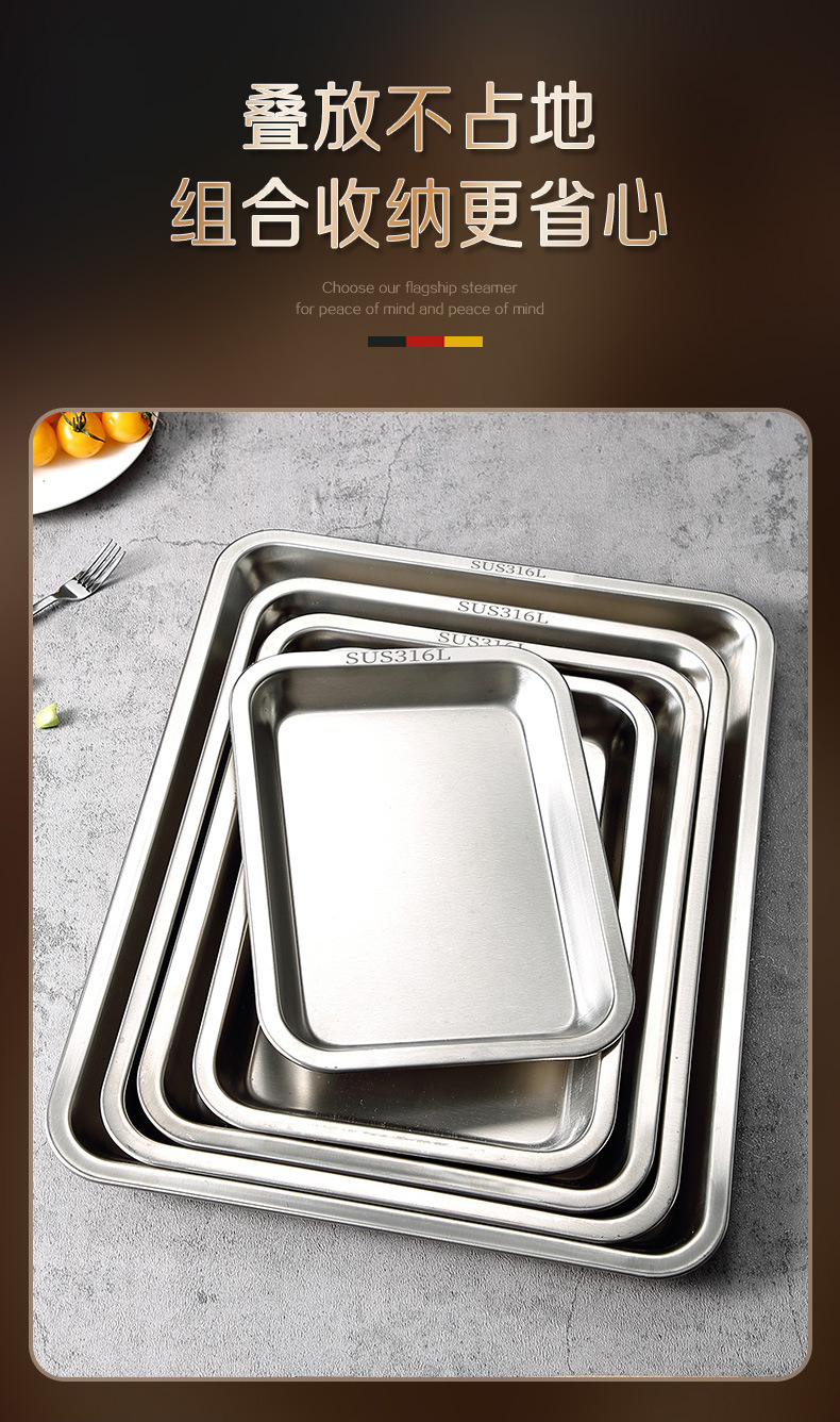 공장 직접 316L 스테인레스 스틸 플레이트 직사각형 스퀘어 플레이트 접시 가정용 바베큐 트레이 상업용 레스토랑 접시