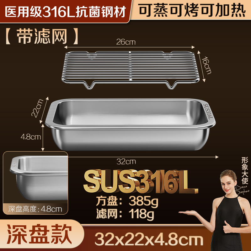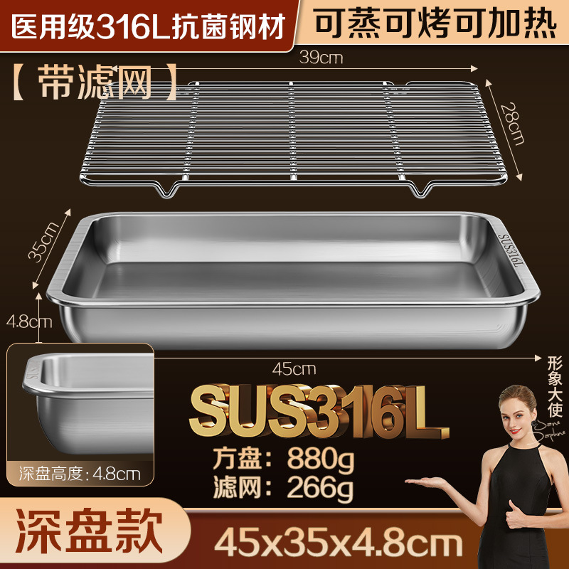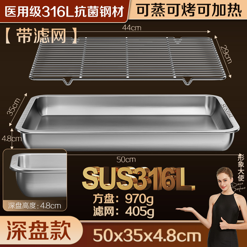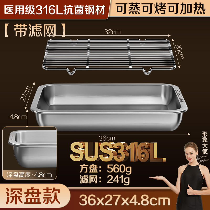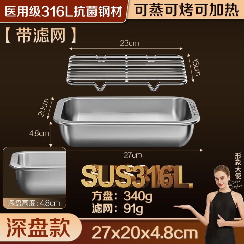 • [특대모델] 316L 항균건강소재 27cmX20cm 딥디쉬 4.8cm + 필터
