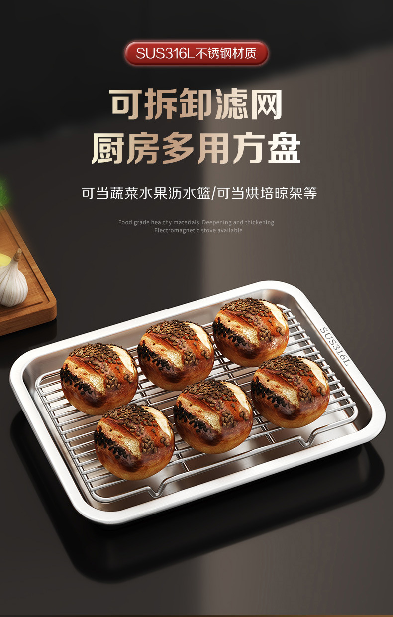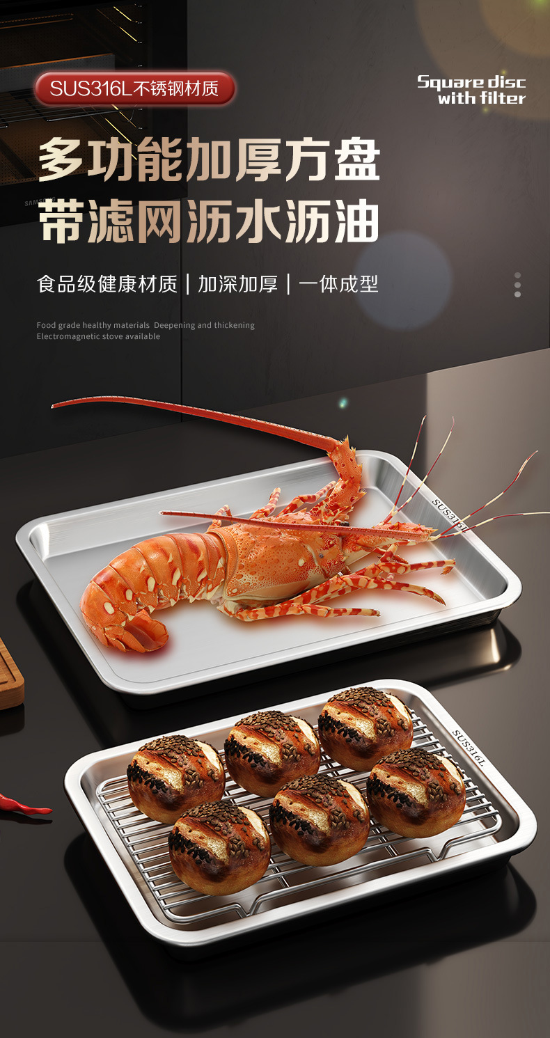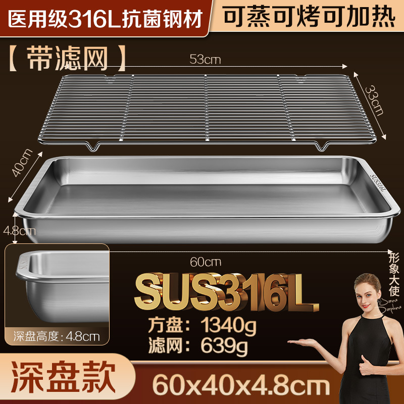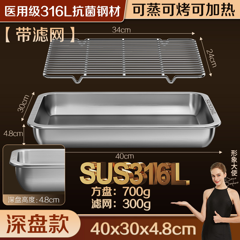 • [특대모델] 316L 항균건강소재 27cmX20cm 딥디쉬 4.8cm + 필터