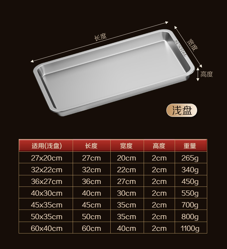 • [특대모델] 316L 항균건강소재 60cmX40cm 얕은접시 2cm