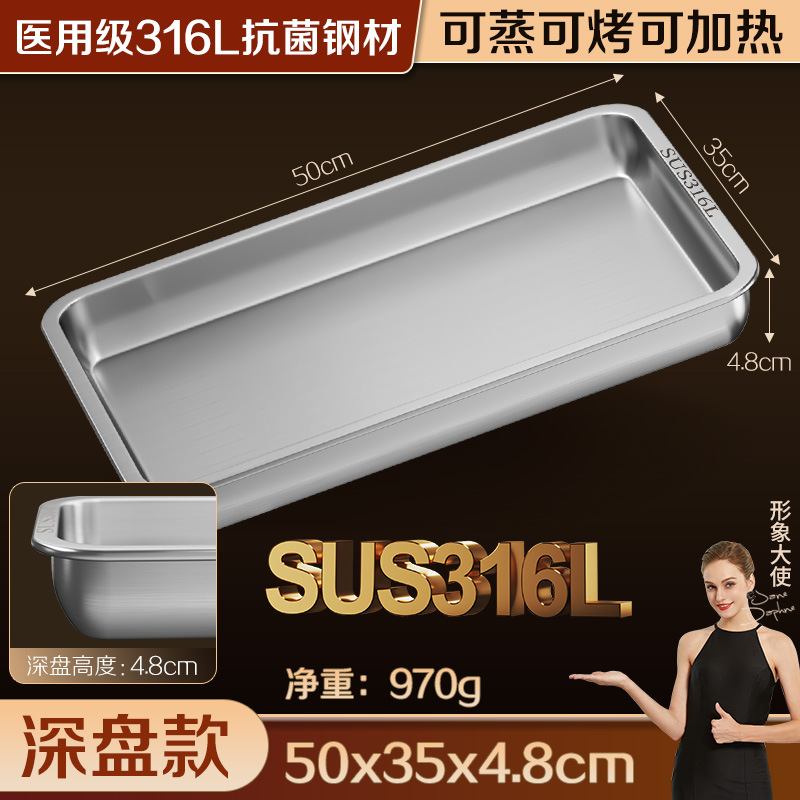 • [특대모델] 316L 항균건강소재 50cmX35cm 깊은접시 4.8cm