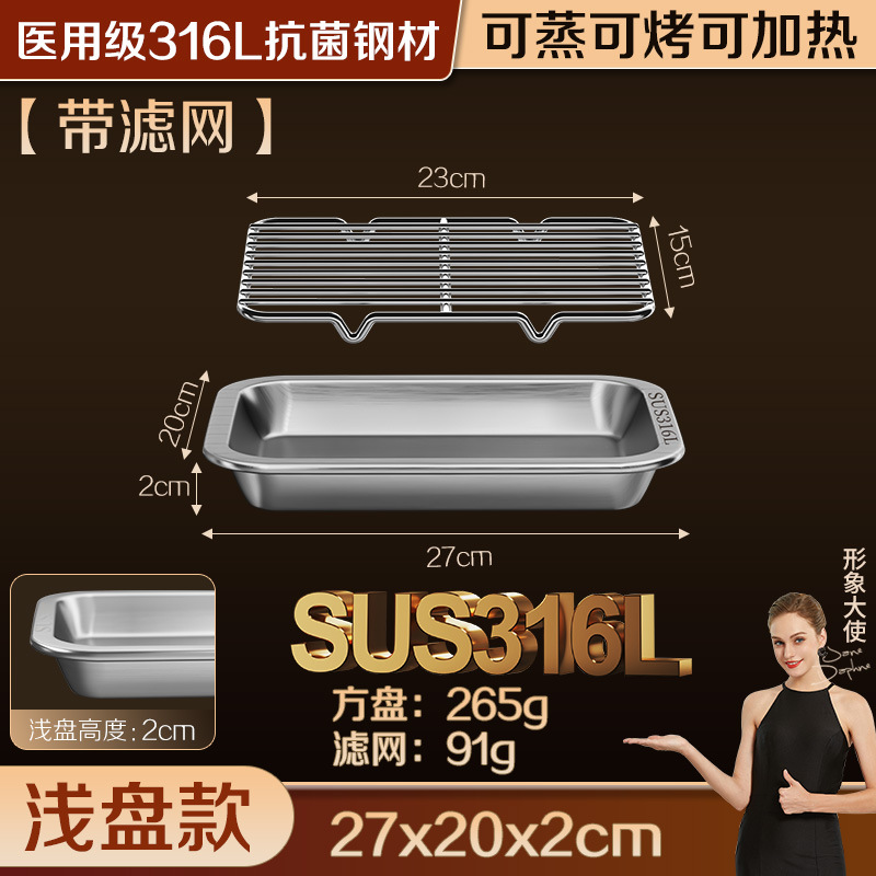 • [특대모델] 316L 항균건강소재 27cmX20cm 얕은접시 2cm + 필터