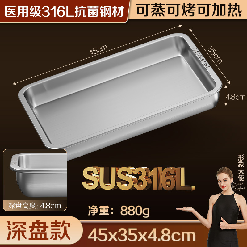 • [특대모델] 316L 항균건강소재 45cmX35cm 깊은접시 4.8cm