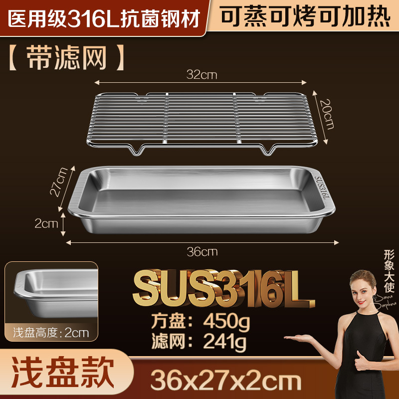 • [특대모델] 316L 항균건강소재 36cmX27cm 얕은접시 2cm + 필터