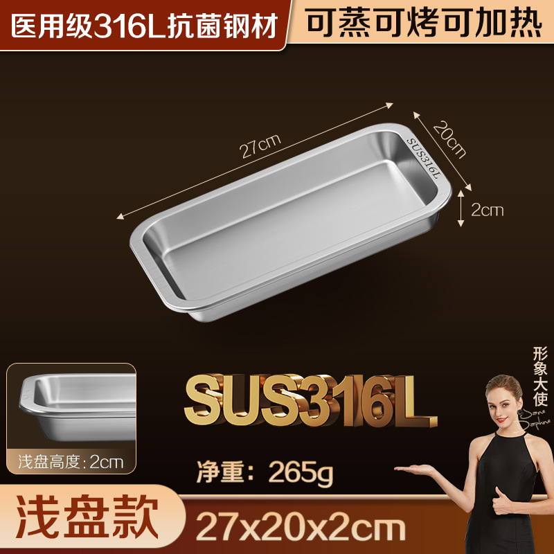 • [특대모델] 316L 항균건강소재 27cmX20cm 얕은접시 2cm
